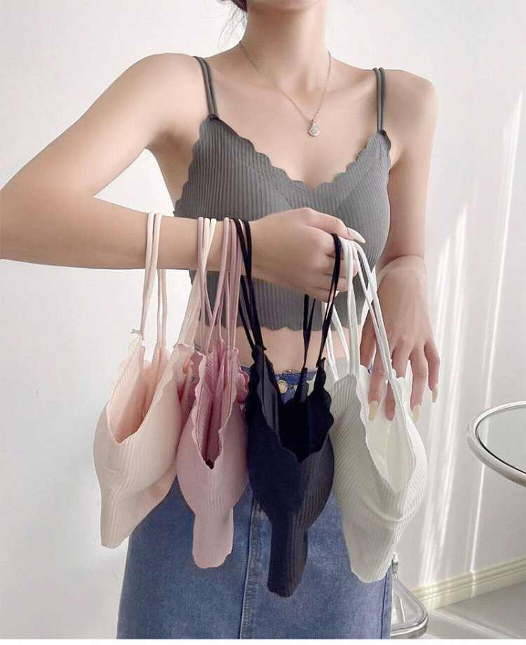 스포츠 뷰티 백 속옷 여성용 래핑 가슴과 튀긴 파엠프리 반지, 끈이없는 얇은 카미 솔 조끼 브래지어 원피스스토어 가기