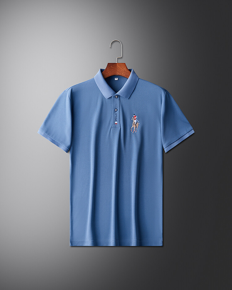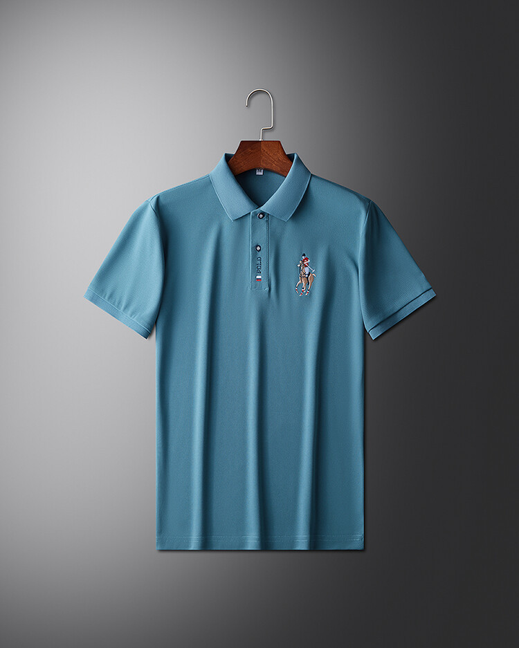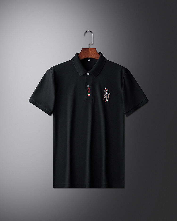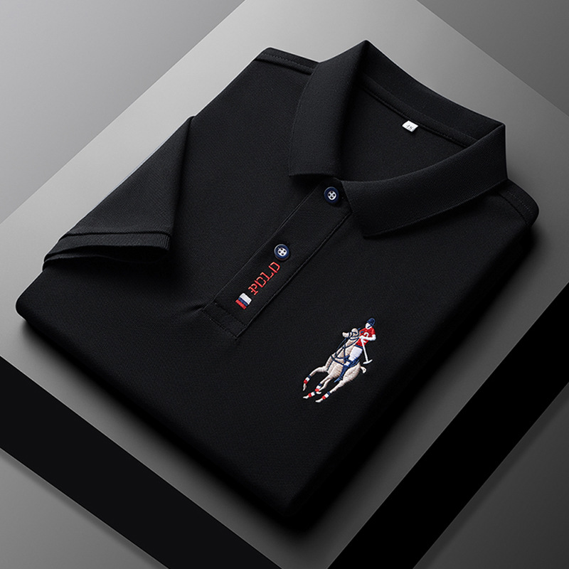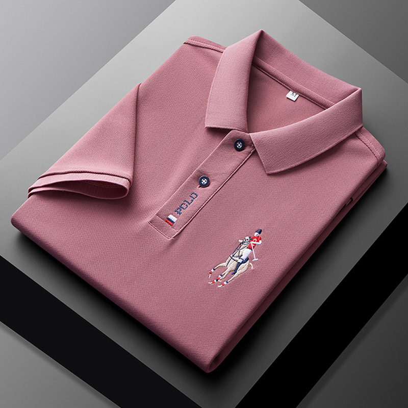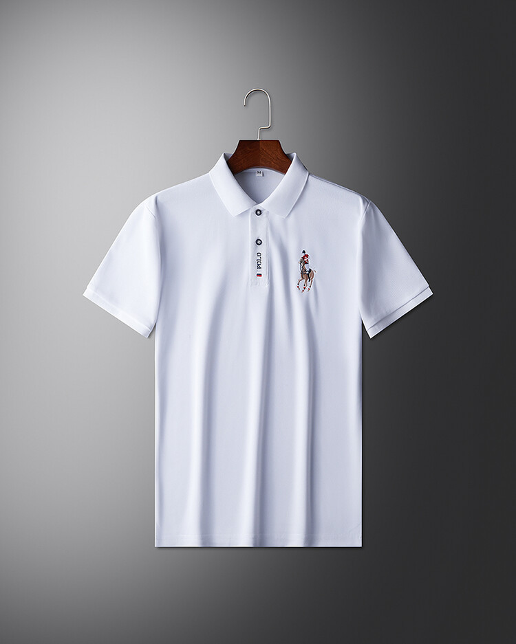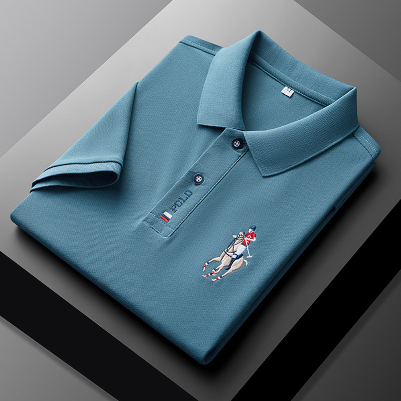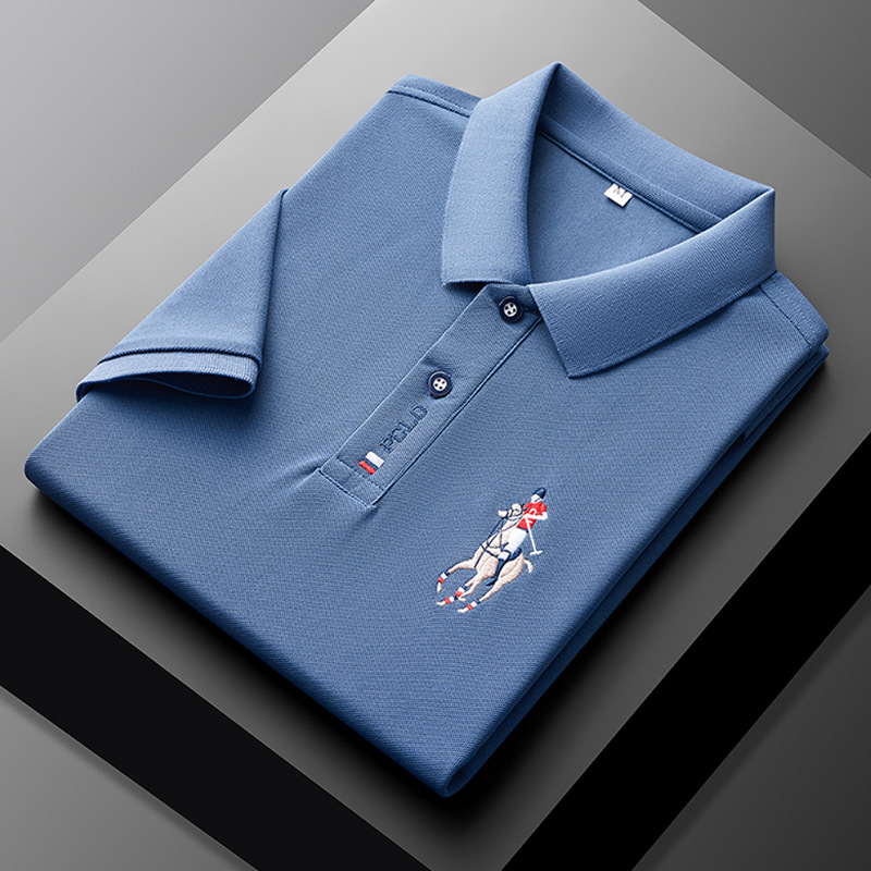 폴 서머 포트 스타일 Ins 자수 폴로 셔츠 남성용 루즈 옷깃 반팔 티셔츠 심플 올 매치 10 대 탑