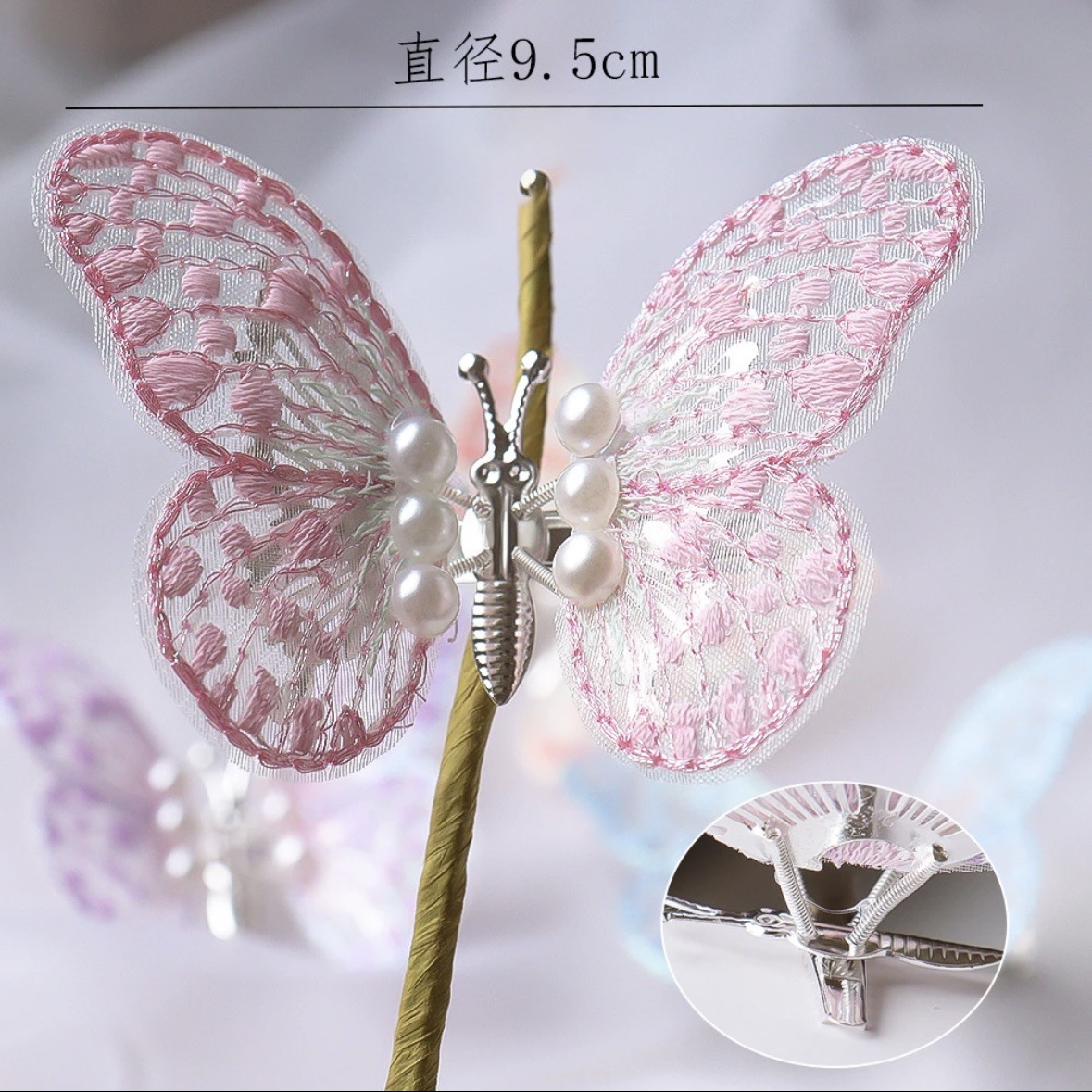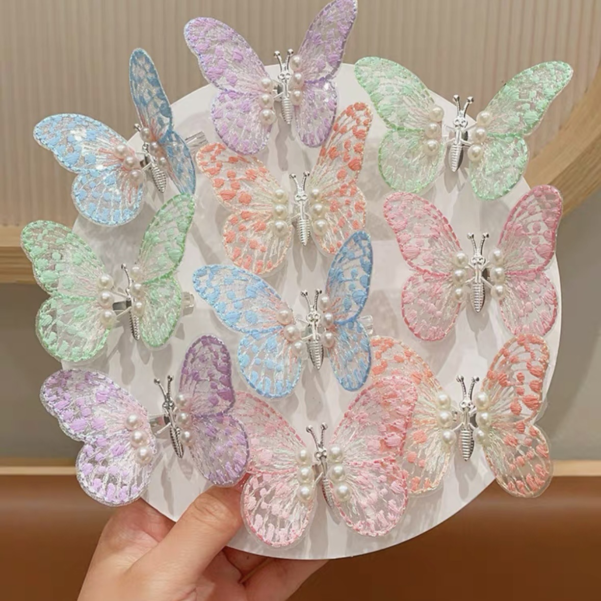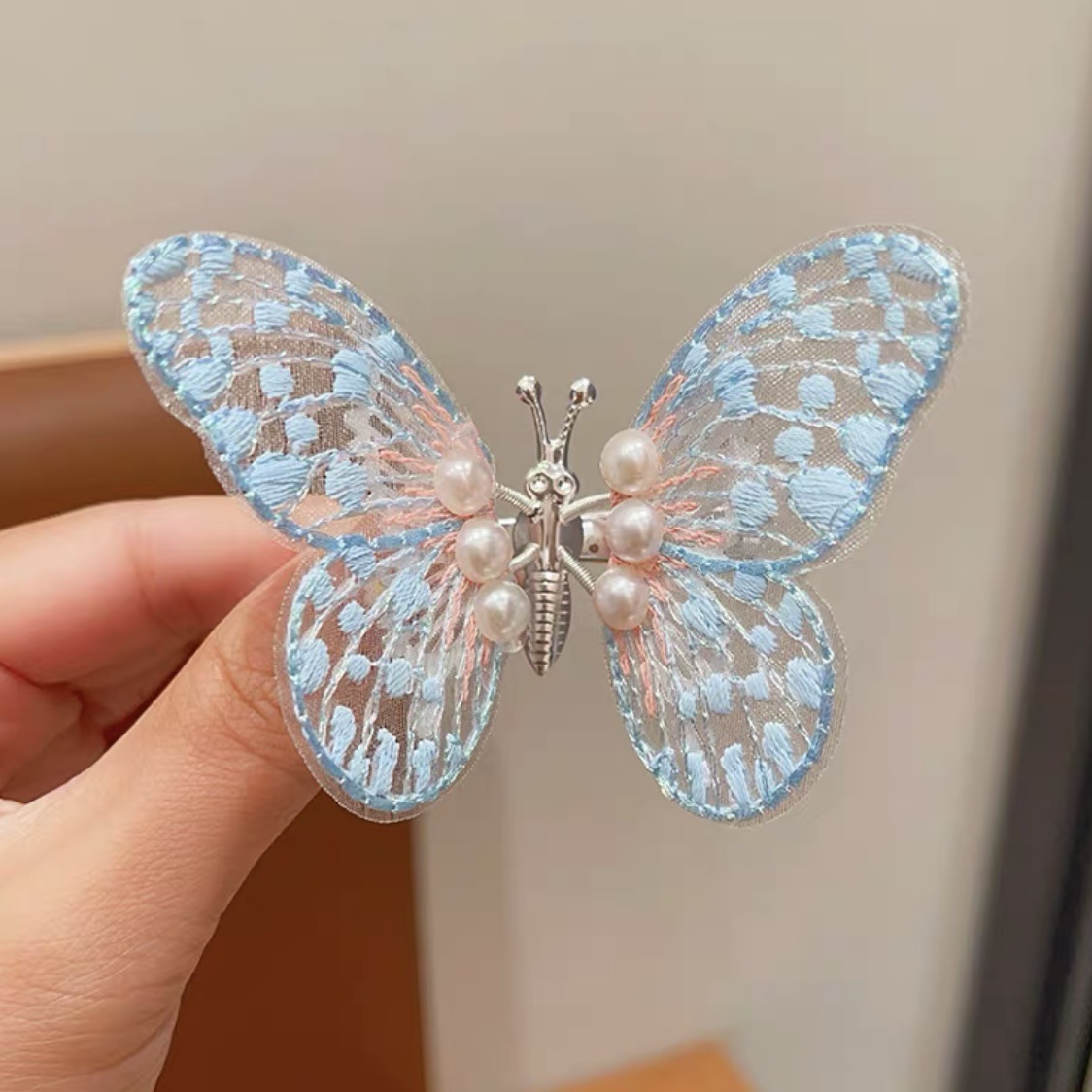 스마트 골동품 이동 나비 머리핀 슈퍼 요정 진주 자수 클립 어린이 입체 귀여운 머리핀 헤어 액세서리