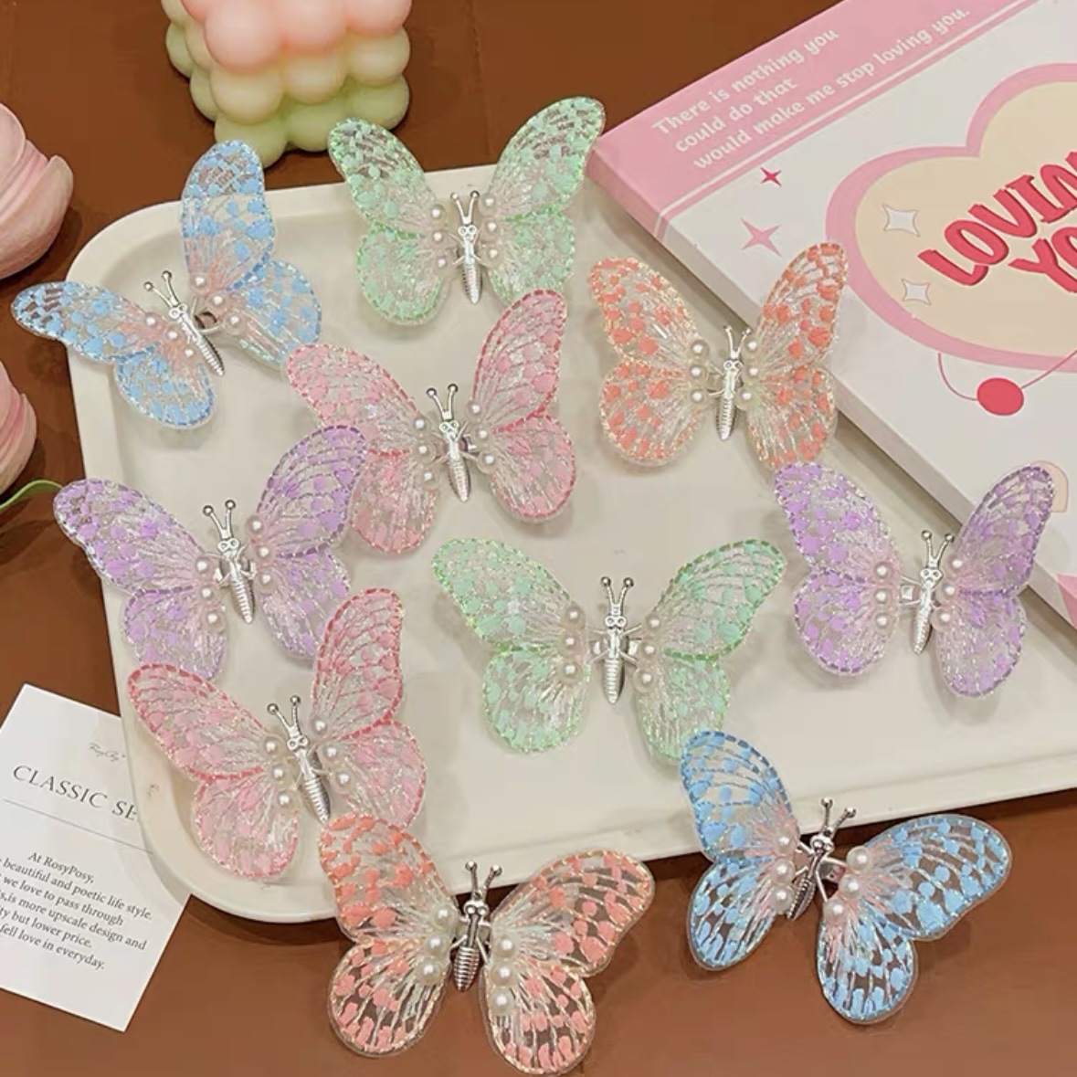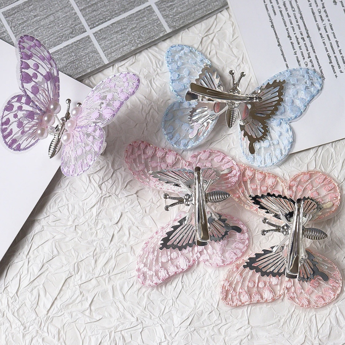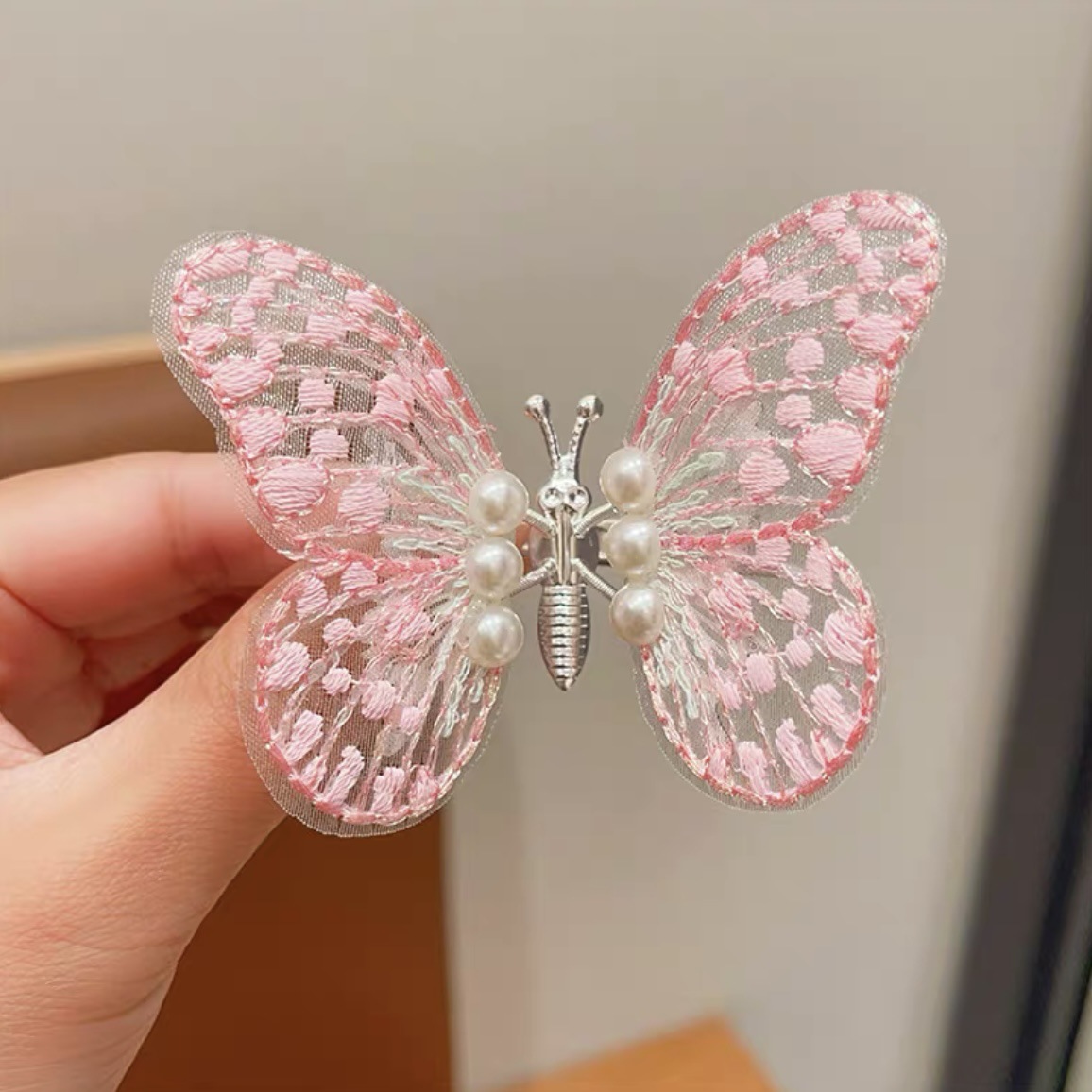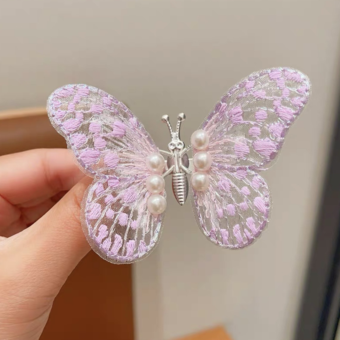 스마트 골동품 이동 나비 머리핀 슈퍼 요정 진주 자수 클립 어린이 입체 귀여운 머리핀 헤어 액세서리