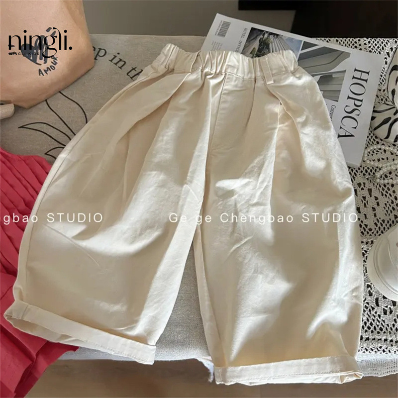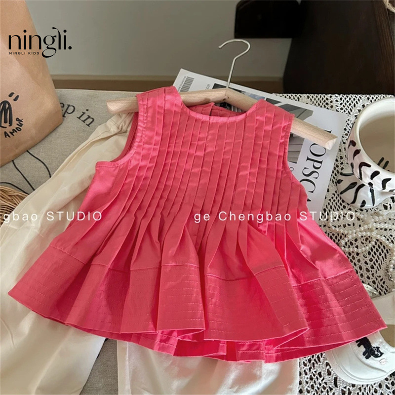 라임 소녀의 여름 세트 새로운 유행 단색 빨간 조끼 살구색 넓은 다리 바지 아기 소녀 세트 트렌디