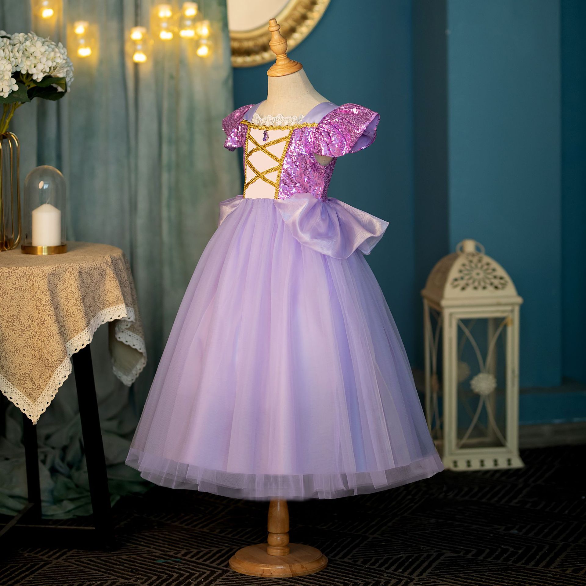 2025 새로운 신데렐라 라푼젤 벨 드레스 보우 소녀 드레스 어린이 공연 의상스토어 가기