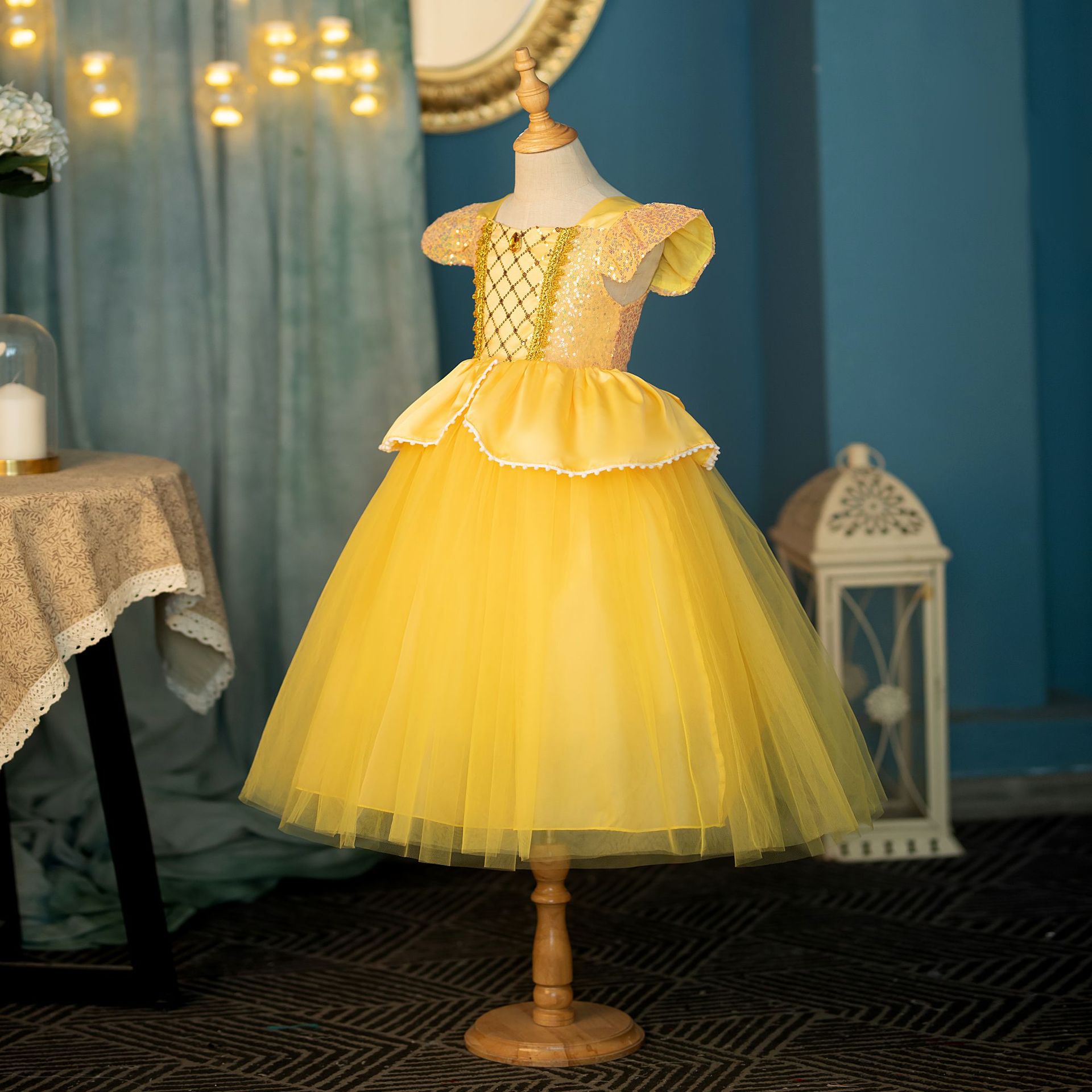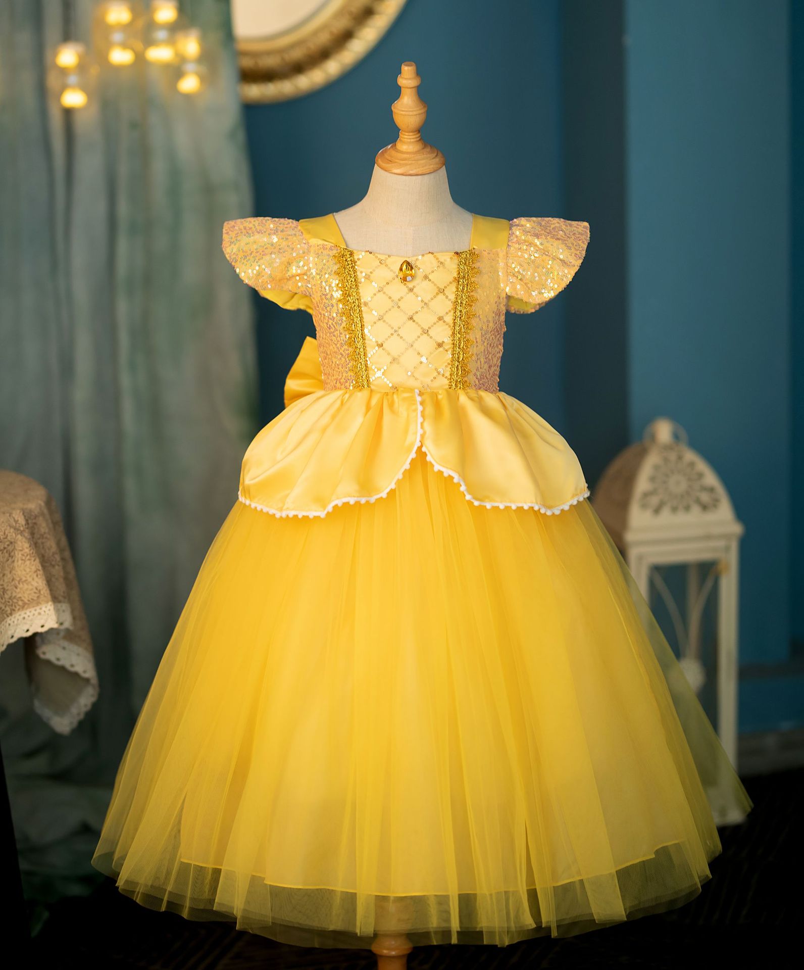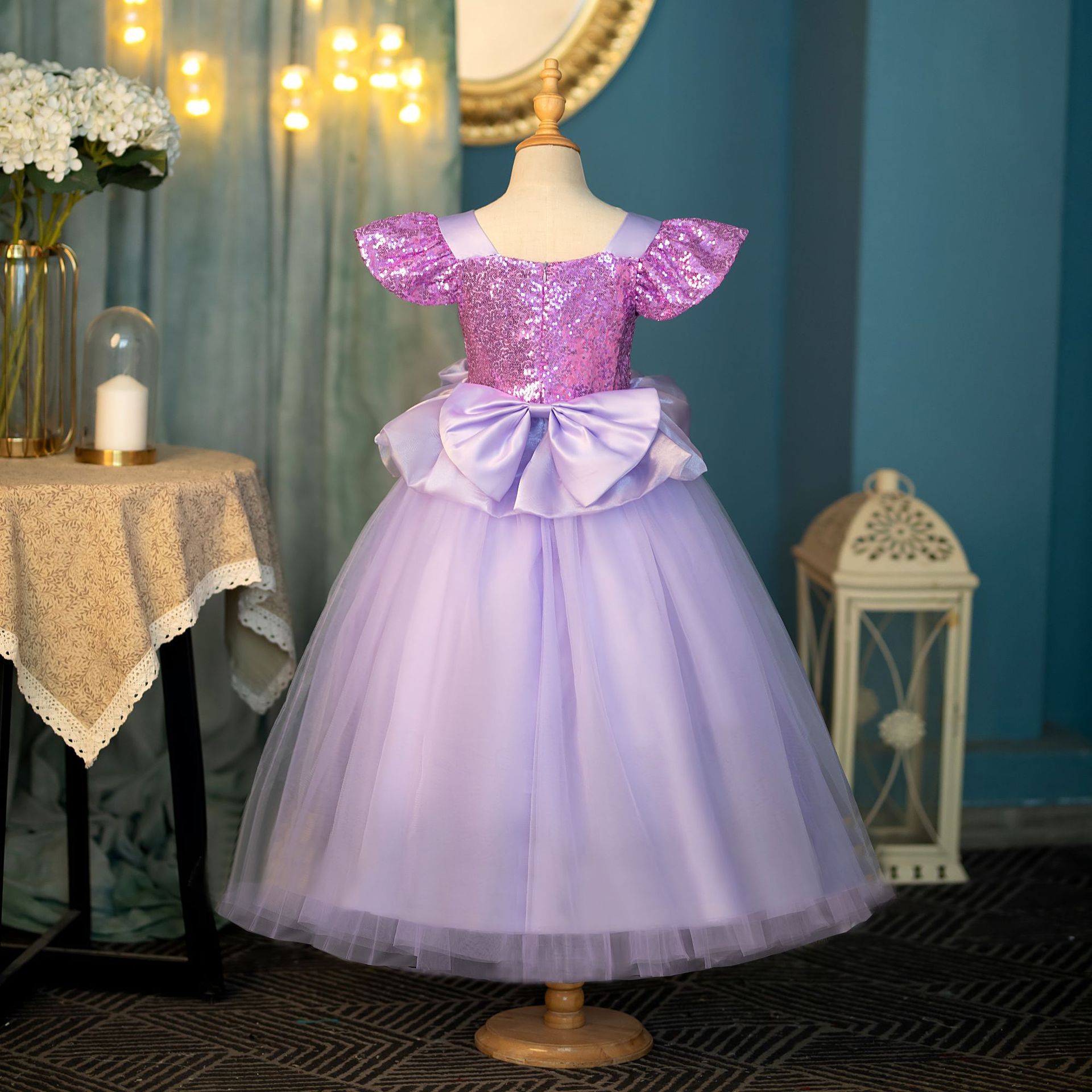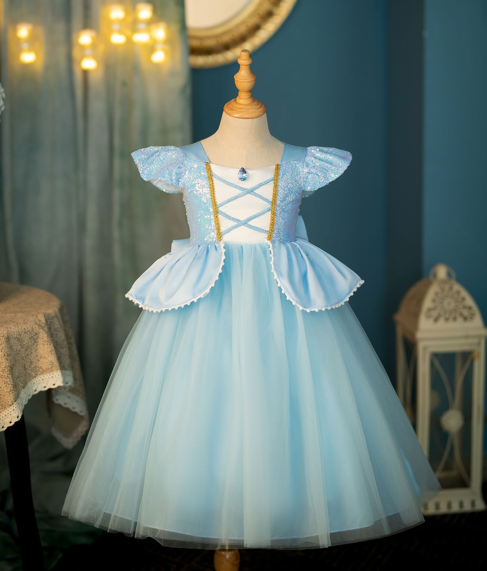 2024新款女童公主裙,所有珠片部分都用网纱分隔开,保住公主裙娇嫩的皮肤