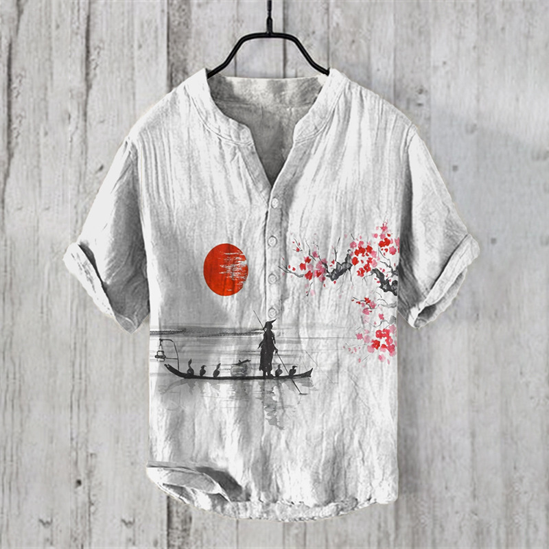 AliExpress 국경 대외 무역 2024 여름 새로운 대형 디지털 인쇄 남자 짧은 소매 폴로 셔츠 느슨한