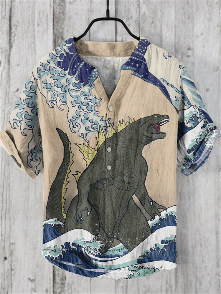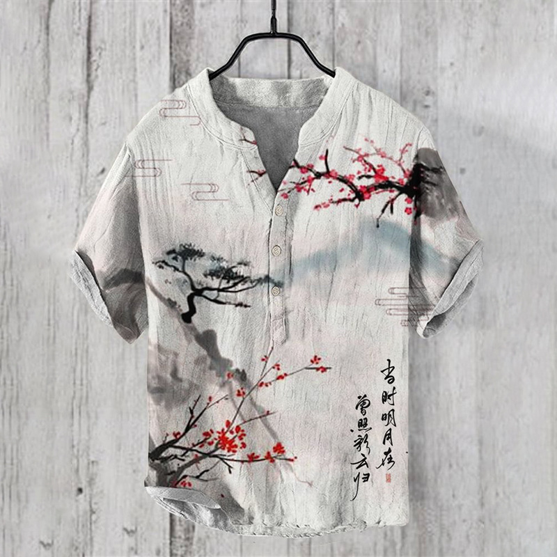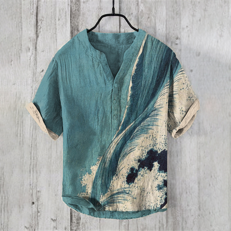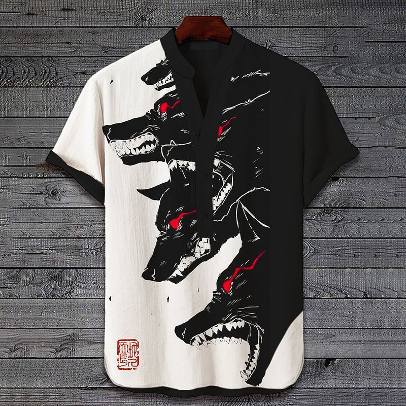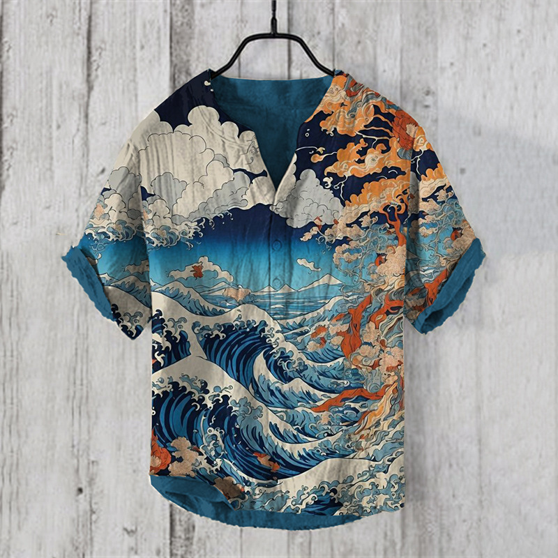 새로운 패션 여름 캐주얼 성파절 인쇄 하와이안 셔츠 남성 휴가 해변 무역 국경 제조 업체