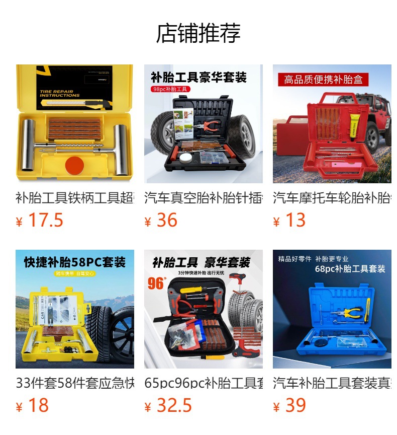 24피스 세트, 46피스 세트, 62피스 세트, 자동차, 오토바이, 전기차 타이어 수리용 빠른 응급처치 천 가방 타이어 수리 도구스토어 가기