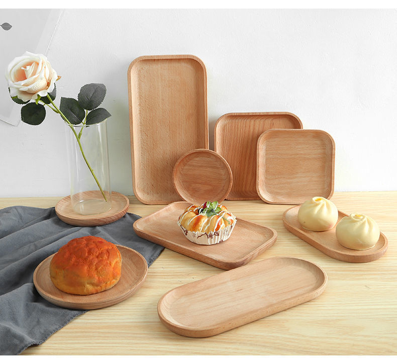솔리드 우드 트레이 인 스타일 가정용 직사각형 라운드 일본 디너 플레이트 피자 나무 트레이 스테이크 나무 접시 티 트레이스토어 가기