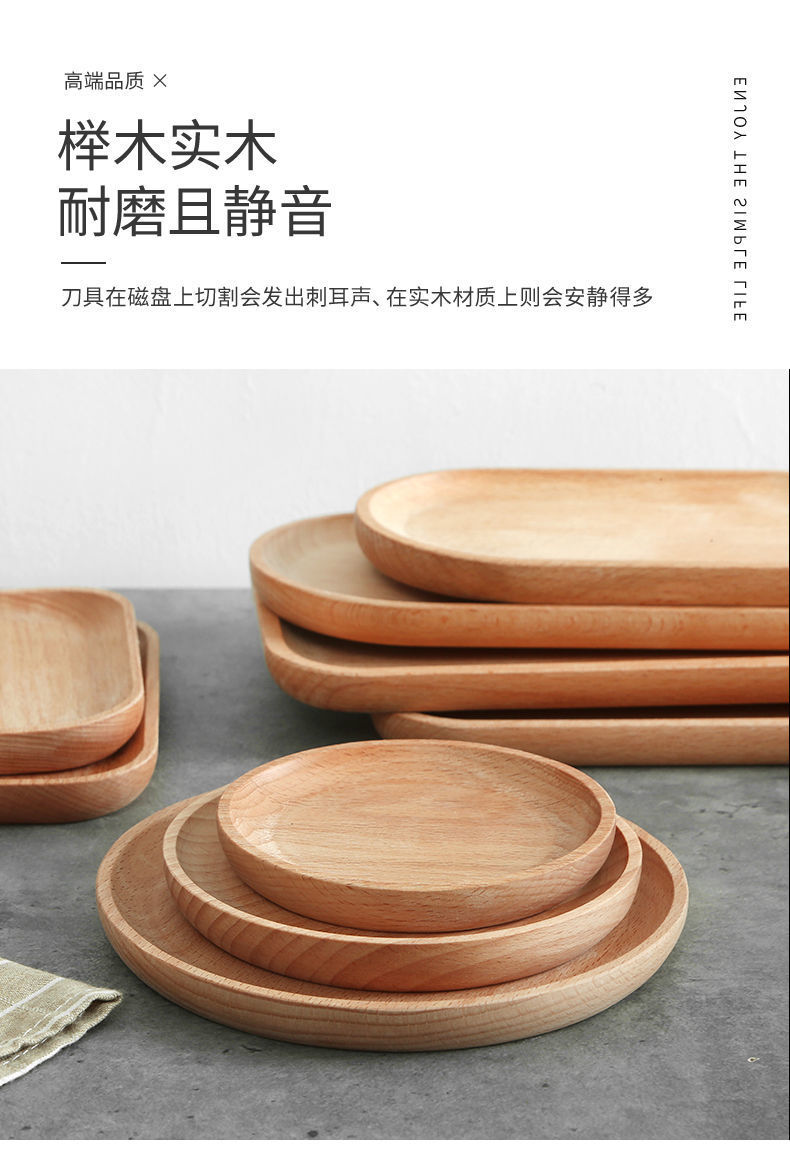 솔리드 우드 트레이 인 스타일 가정용 직사각형 라운드 일본 디너 플레이트 피자 나무 트레이 스테이크 나무 접시 티 트레이