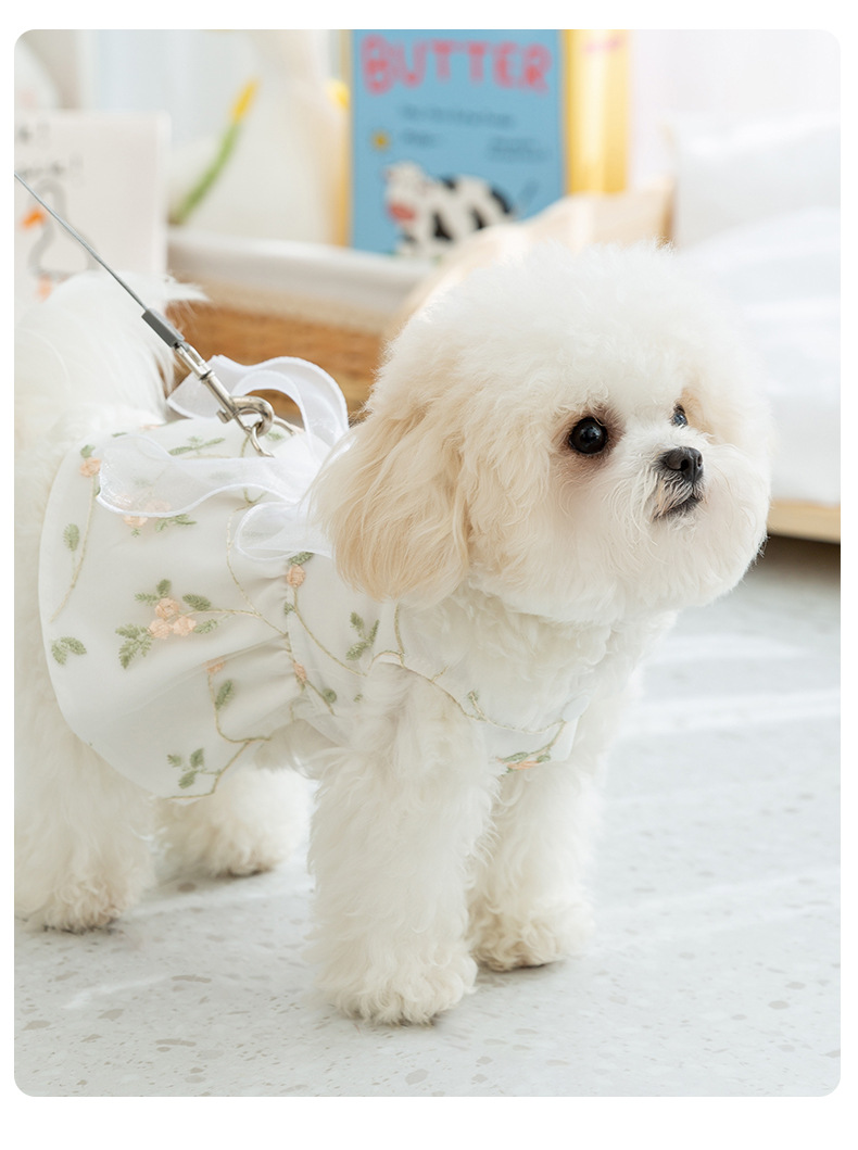 3 차원 꽃 숲 요정 원피스 흰 개 스커트 작은 개 팬더 봄 여름 애완 동물 옷스토어 가기