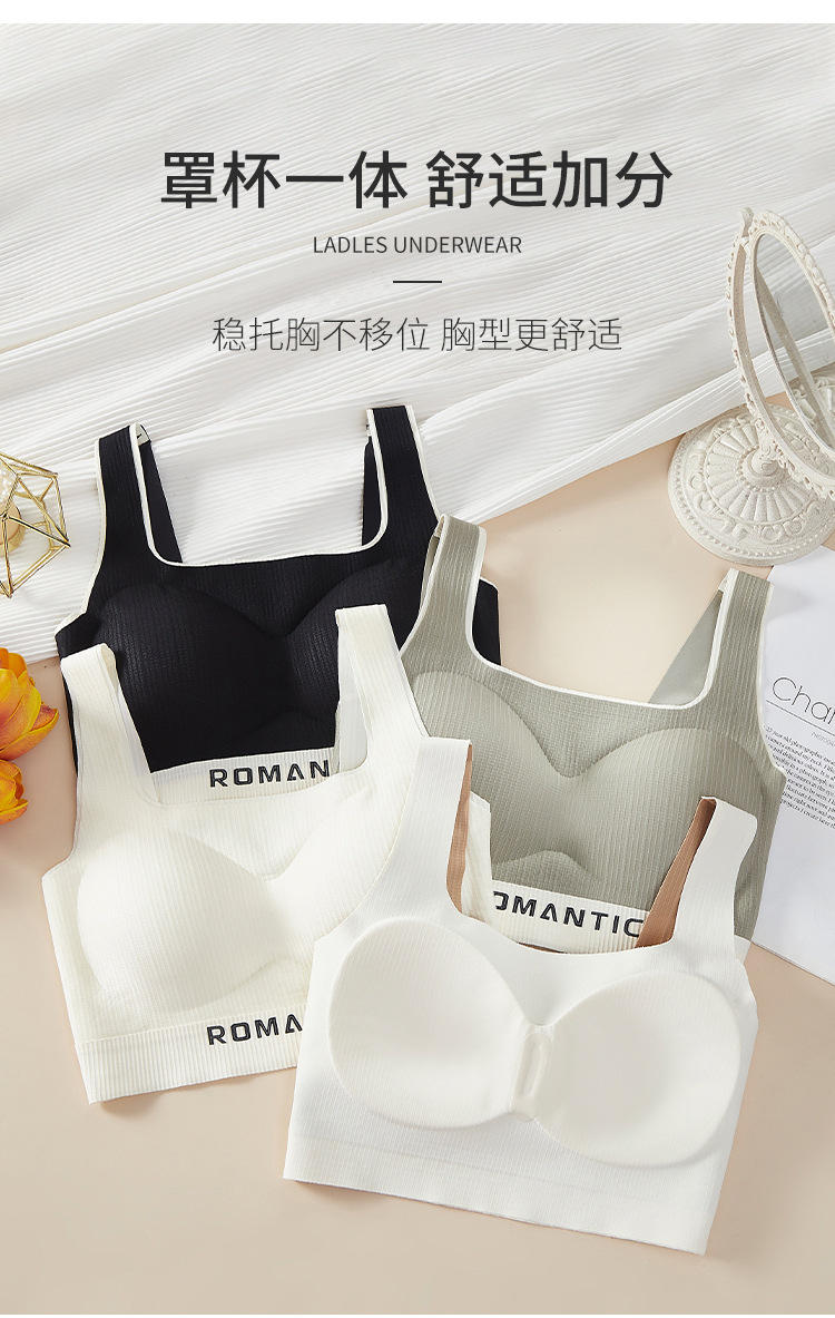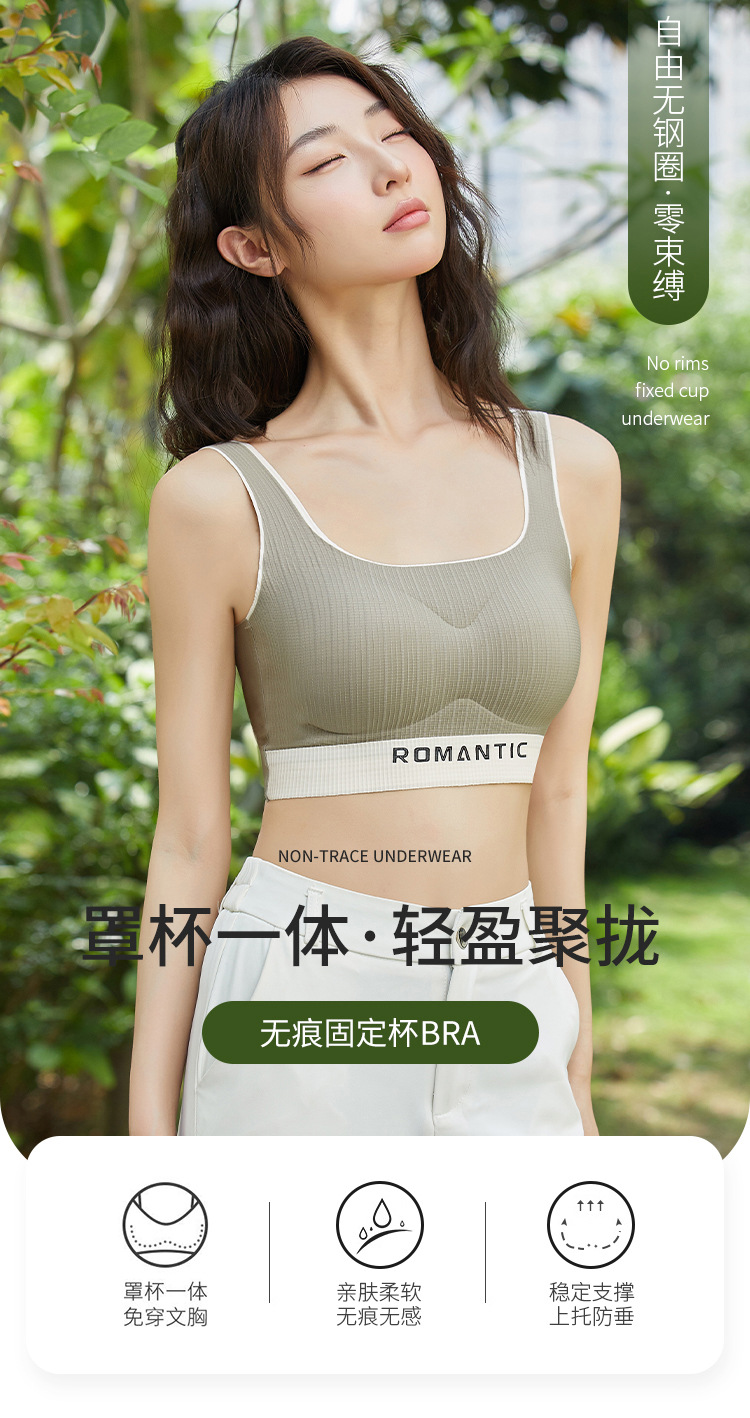 새로운 패션 추적없는 반 고정 컵 아름다운 뒤로 포장 된 가슴 가벼운 스포츠 조끼 편안한 넓은 어깨 스트랩 여성용 통기성 속옷