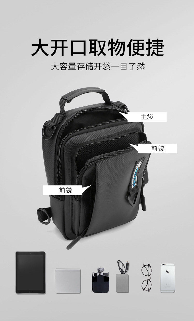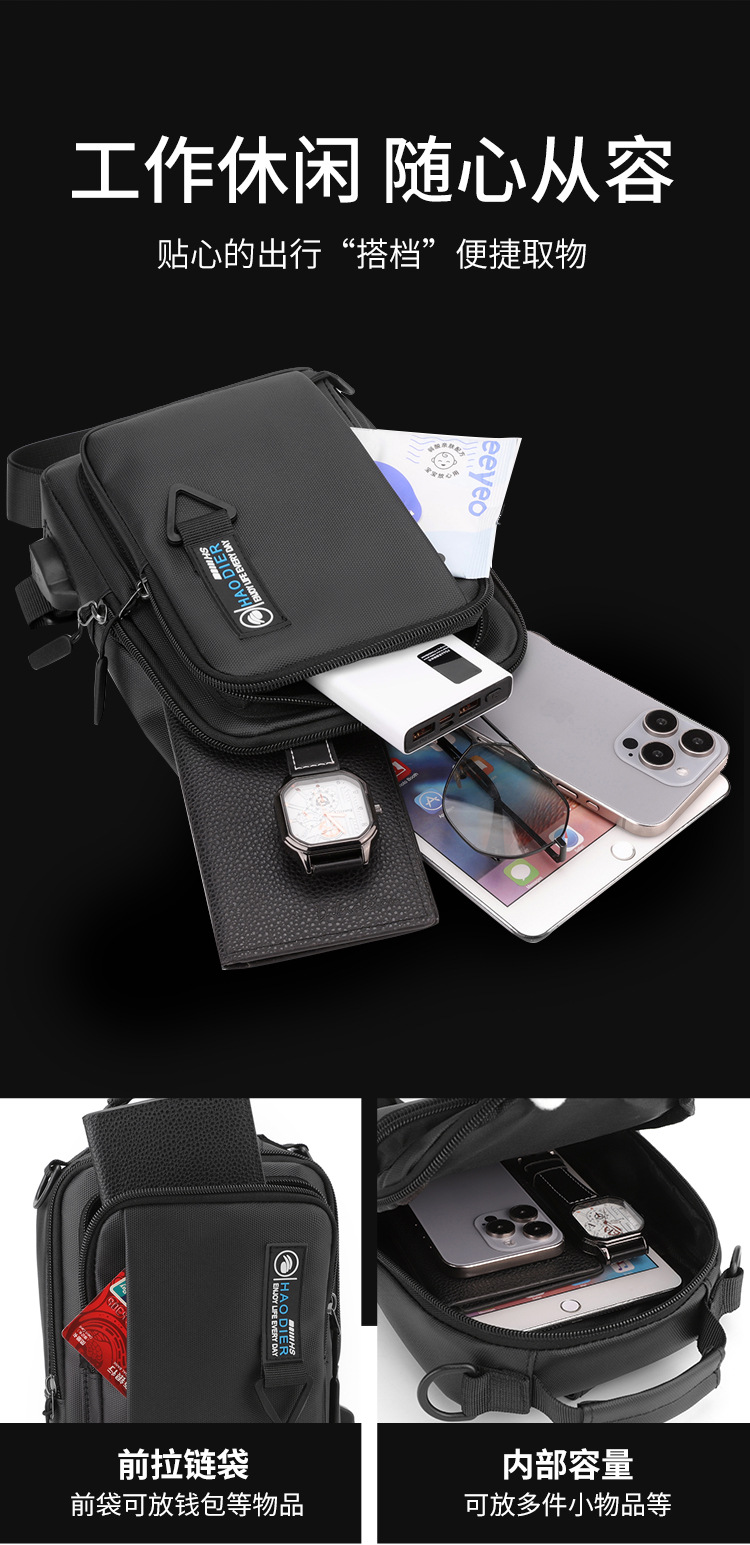 공장 직접 새로운 다기능 남성 가슴 가방 레저 어깨 메신저 가방 야외 USB 충전 도난 방지 배낭