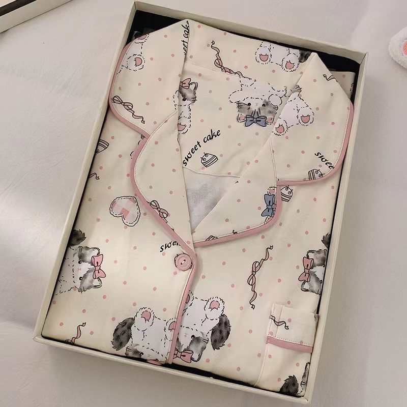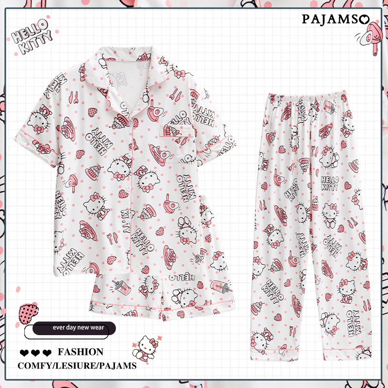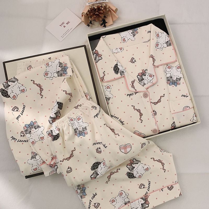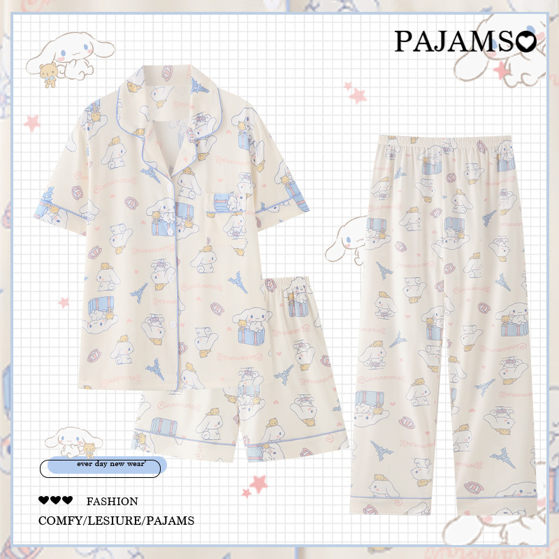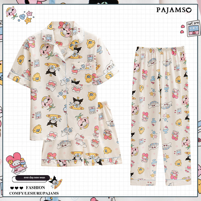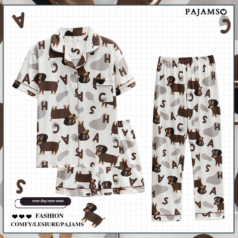 잠옷 여성 여름 새 반팔 바지 파자마 3 종 세트 달콤하고 까만 할 수있는 겉옷 여름 홈 의류 세트