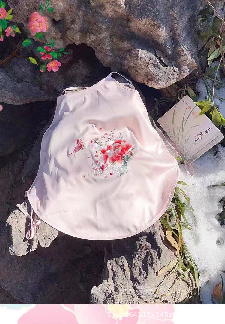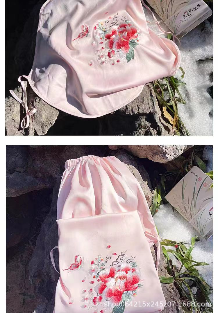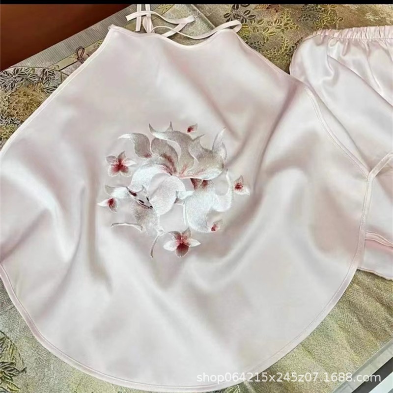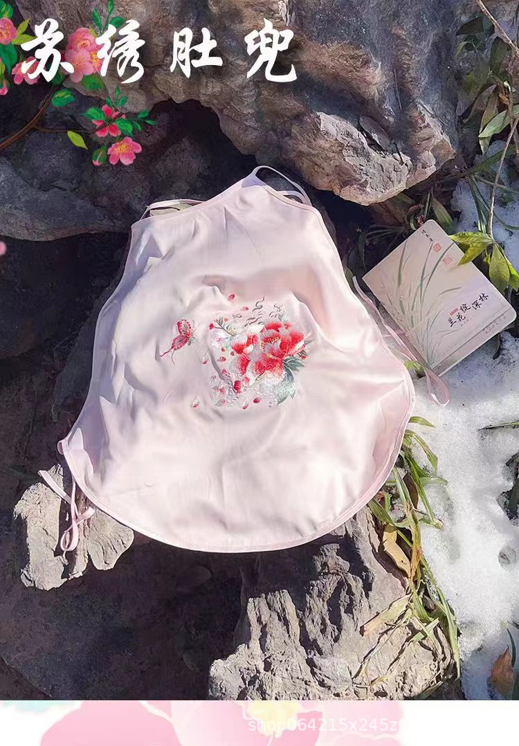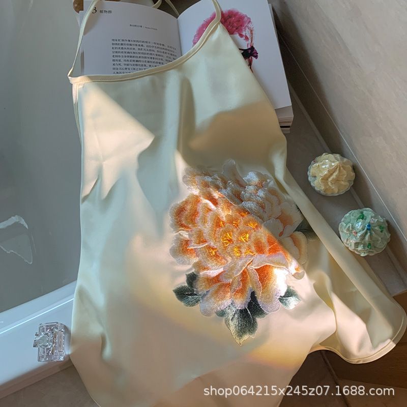 자수 민족 스타일 성인 아이스 실크 벨리 밴드 여성 속옷 더블 레이어 아이스 실크 섹시 파자마 골동품 자수 조끼 세트스토어 가기