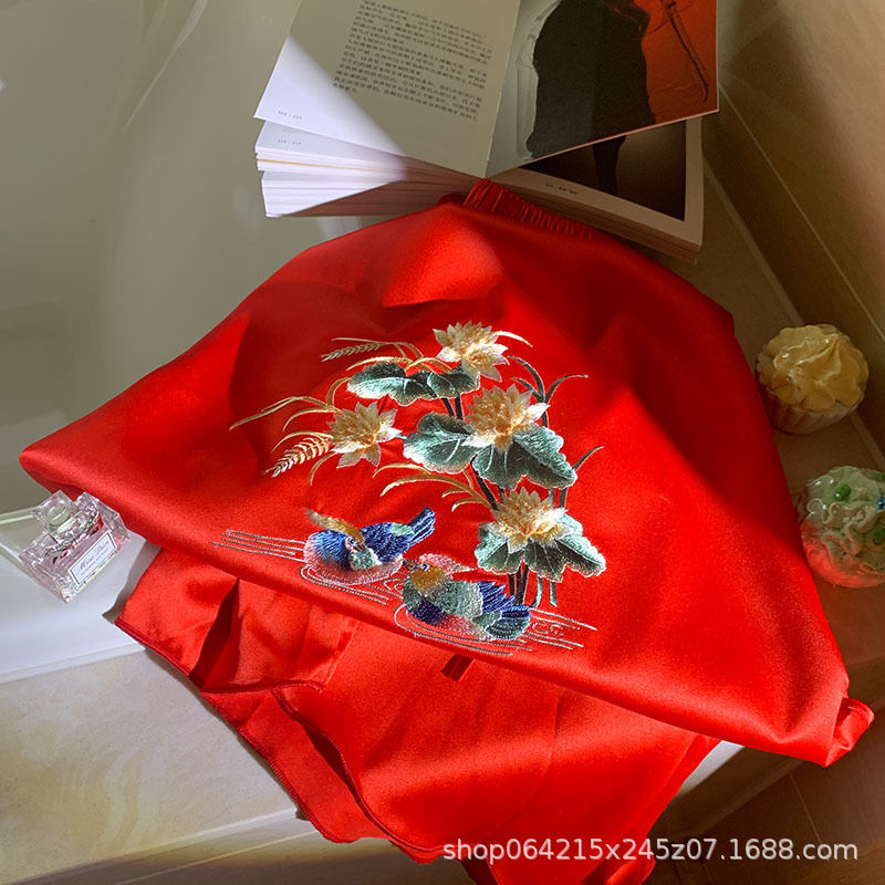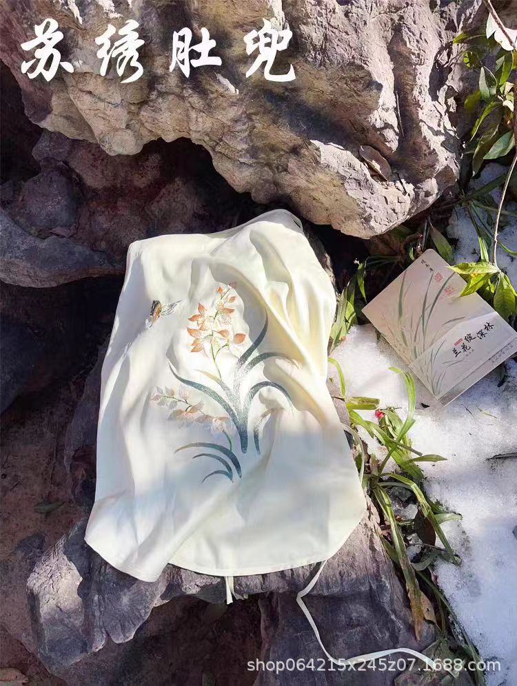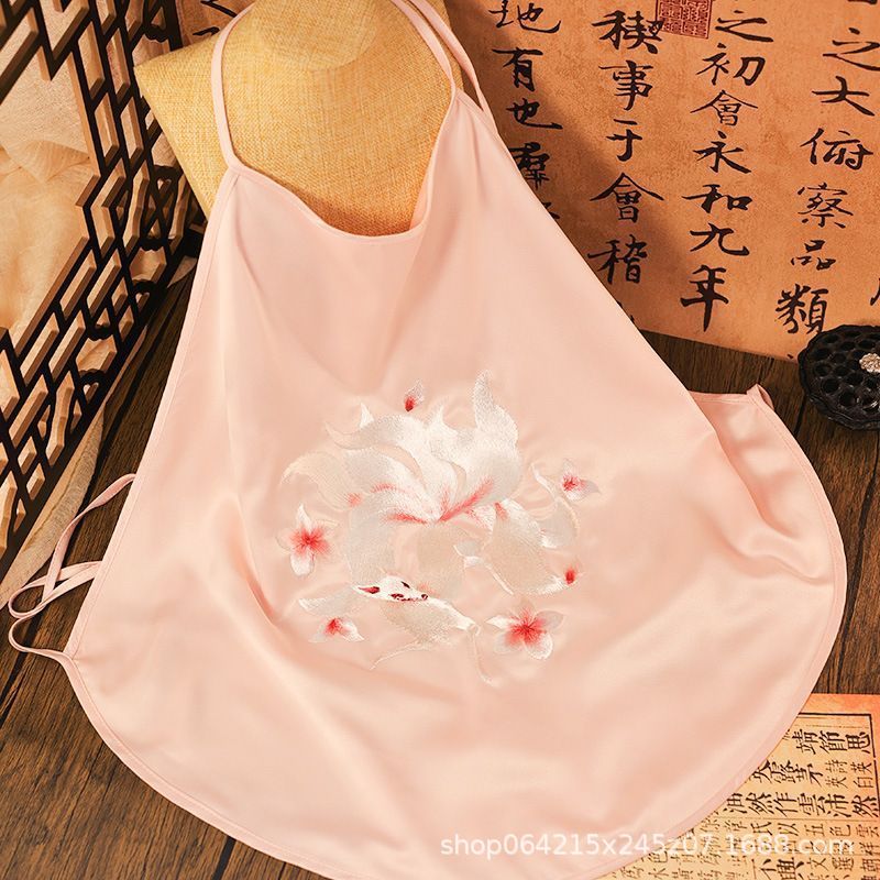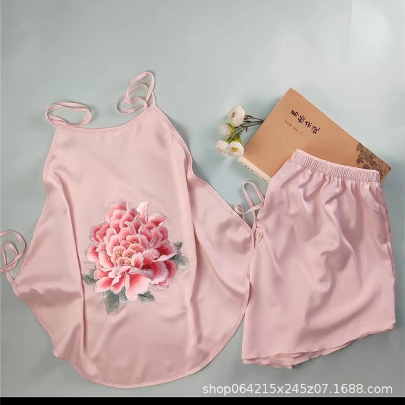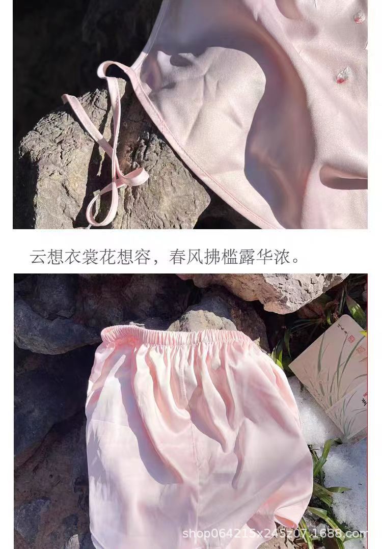 자수 민족 스타일 성인 아이스 실크 벨리 밴드 여성 속옷 더블 레이어 아이스 실크 섹시 파자마 골동품 자수 조끼 세트스토어 가기