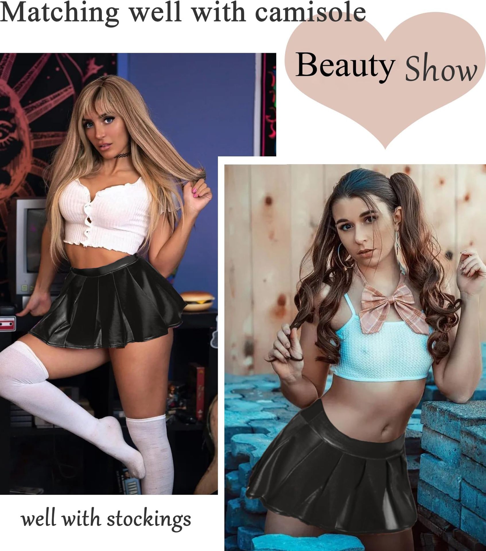 아마존 여성 짧은 미니 원피스 패션 높은 허리 가죽 주름 단색 주름 치마