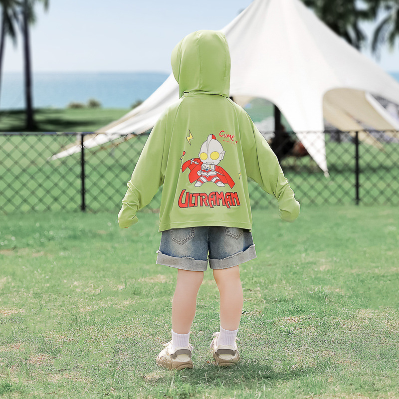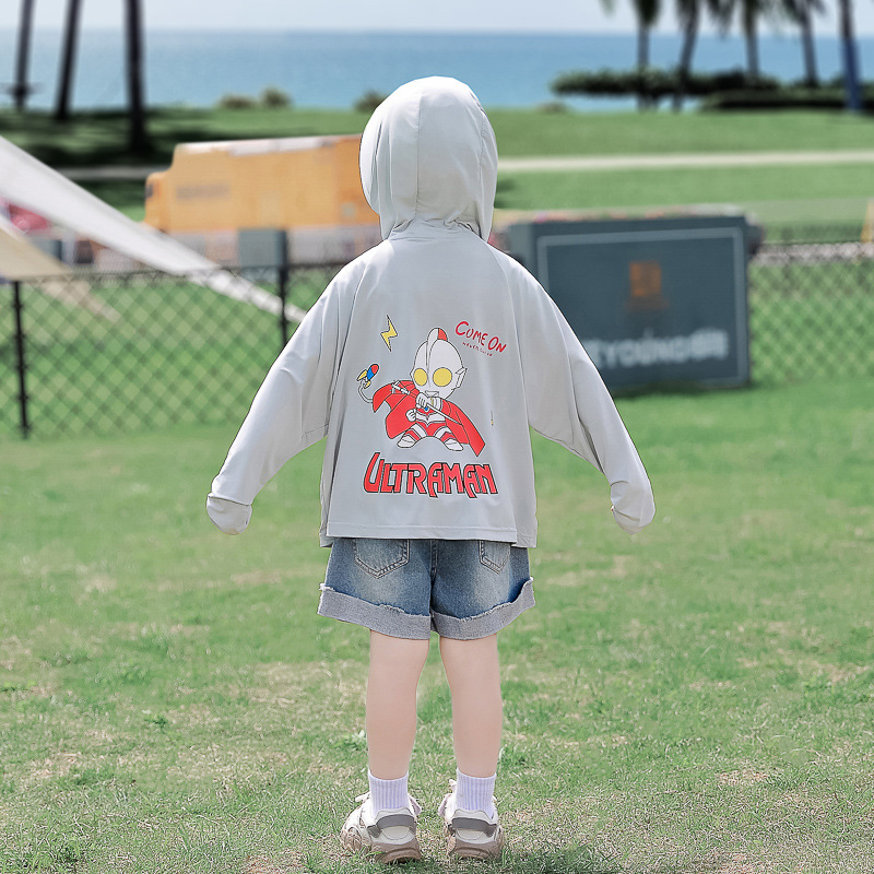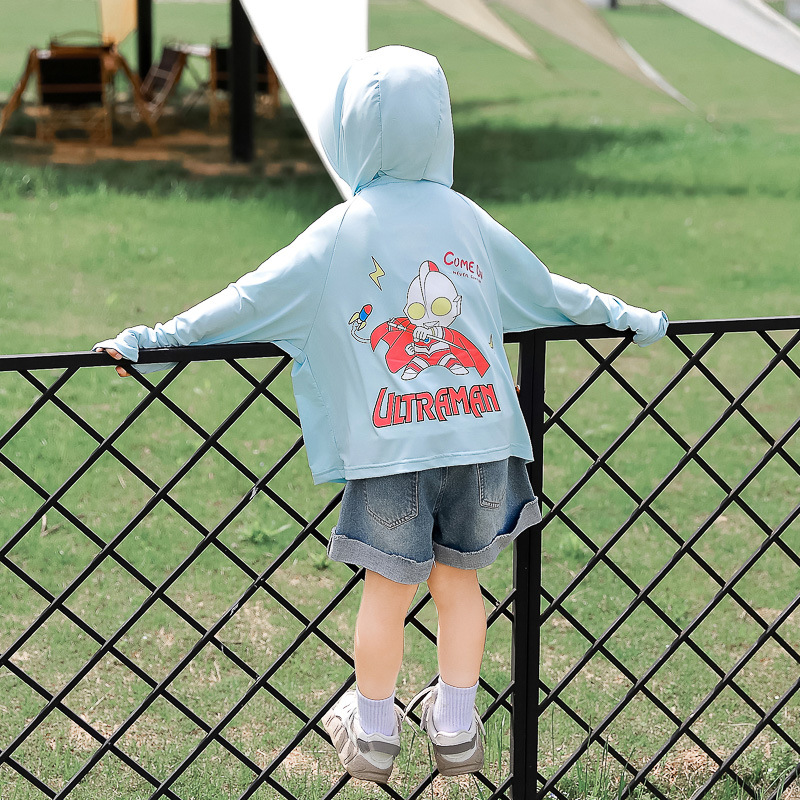 어린이 선 스크린 옷 소년 코트 여름 옷 어린 소녀의 얇은 캐주얼 스포츠 아이스 실크 탑 아기의 울트라 맨 옷스토어 가기
