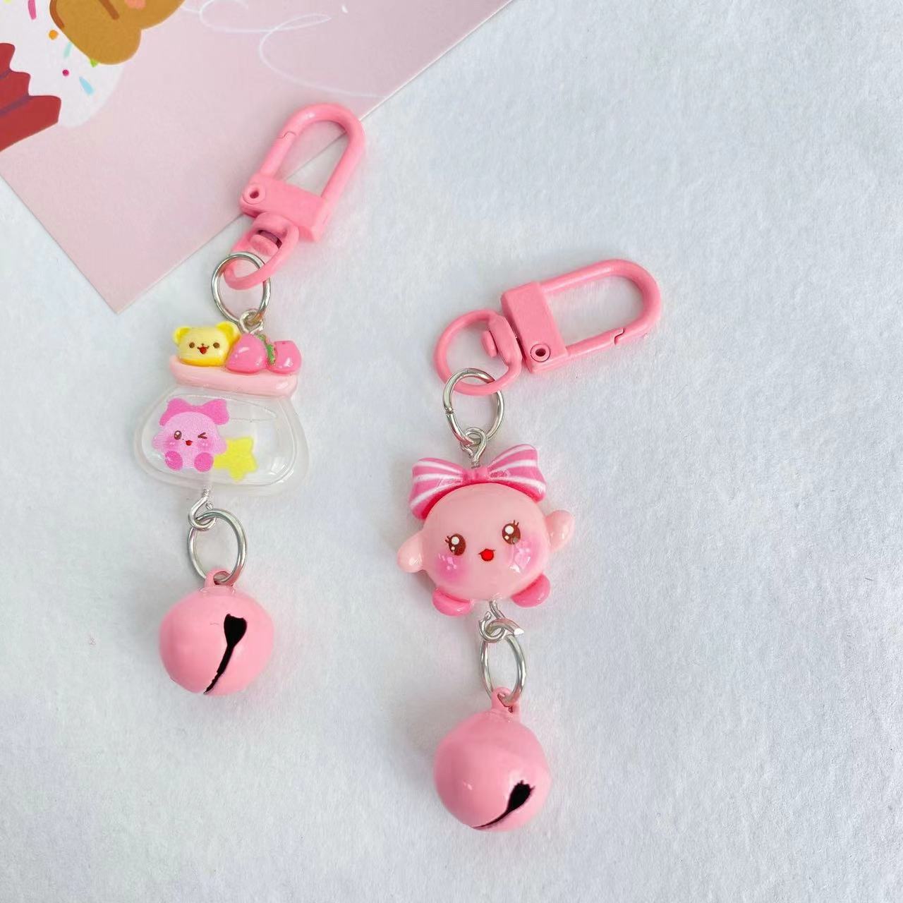 귀여운 코비 핑크 벨 키 체인 백 펜던트 레드 라이딩 북 같은 스타일 커플 최고의 친구 액세서리 생일 선물스토어 가기