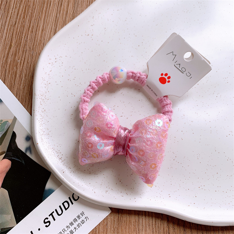어린이 장미 핑크 밝은 얼굴 사랑 Bowknot 헤어 링 어린 소녀의 머리 스트랩 헤어 로프 아기의 머리 로프