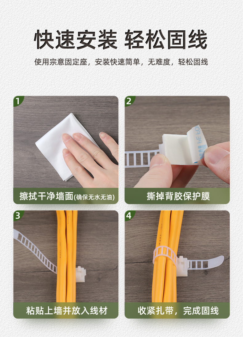 Zongyi 조정 가능한 케이블 타이 홀더, 펀치 없음, 자체 접착식 CL-1 케이블 클립, 네트워크 케이블, 와이어 정리기, 케이블 라우팅스토어 가기