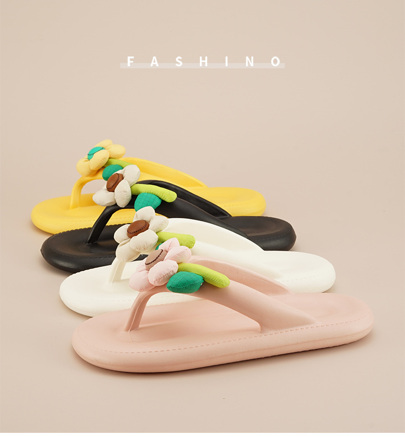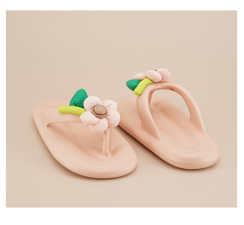 2024년 신상 고급 인플루언서 스타일 달콤한 외출용 여성 두꺼운 밑창 슬리퍼 핑크색 플랫 슬리퍼 경량스토어 가기