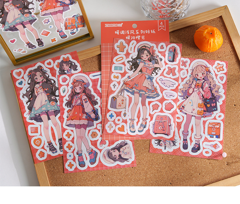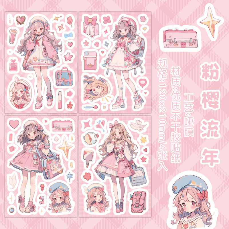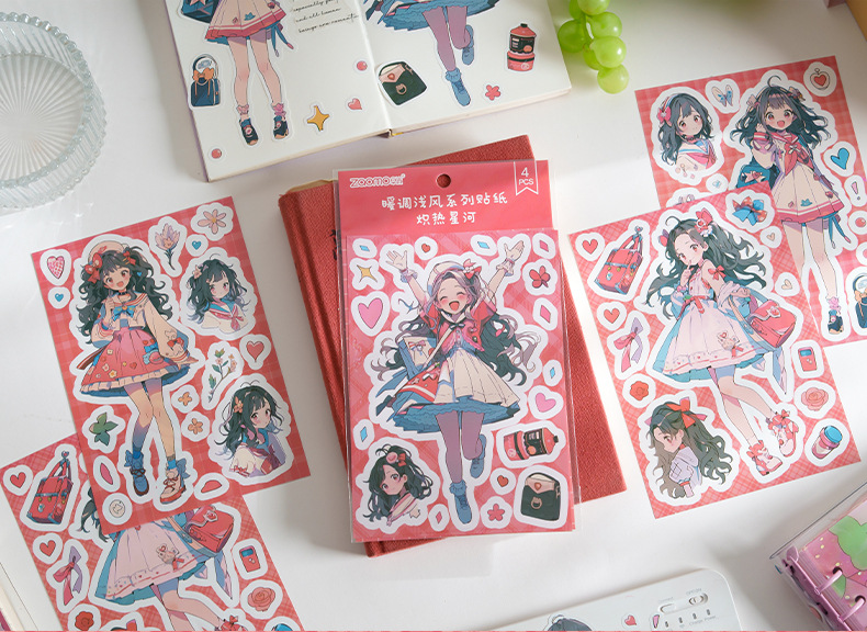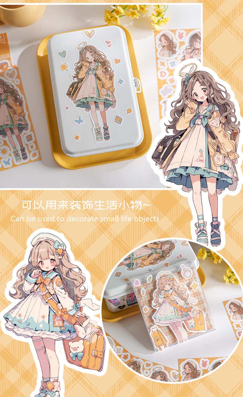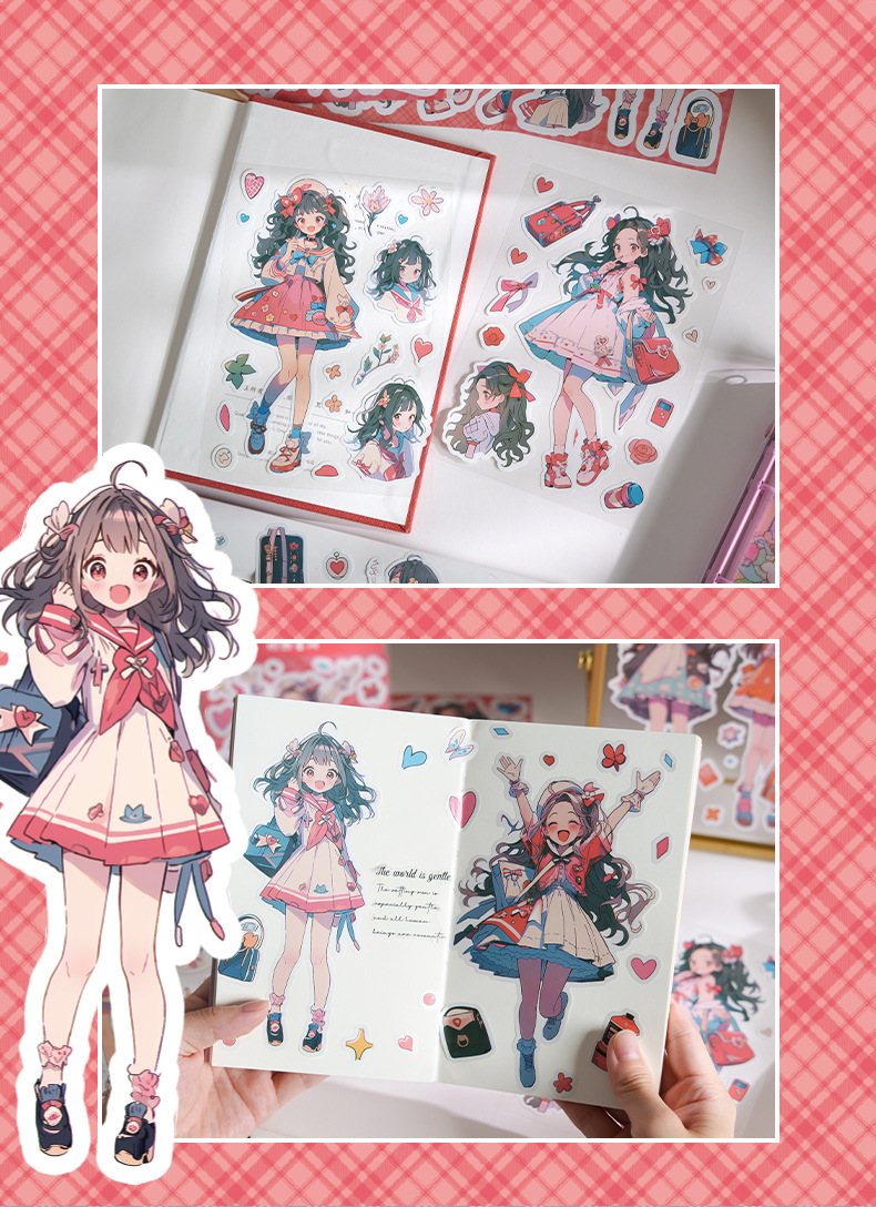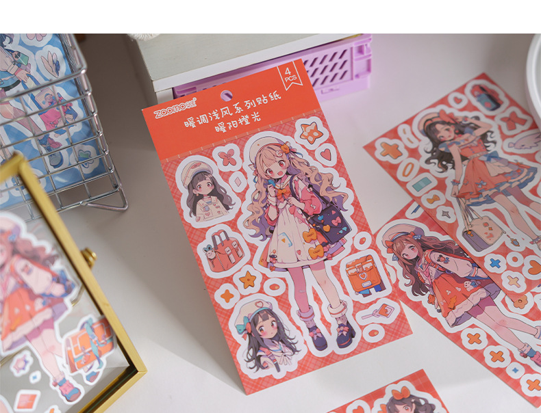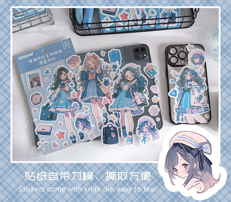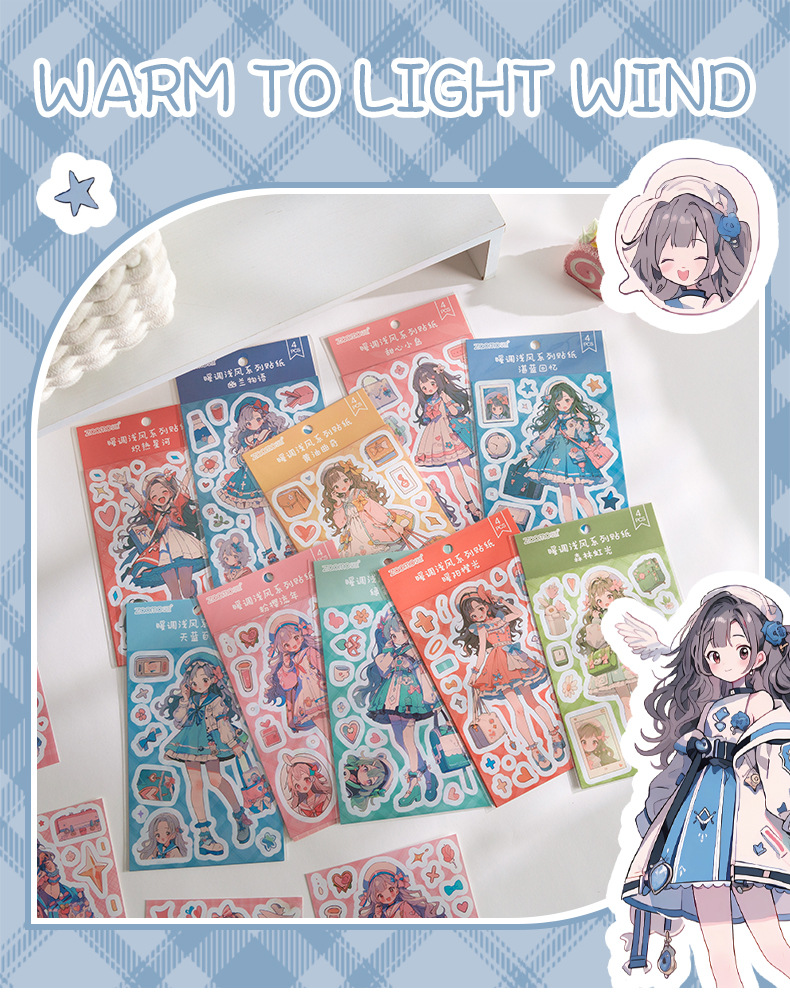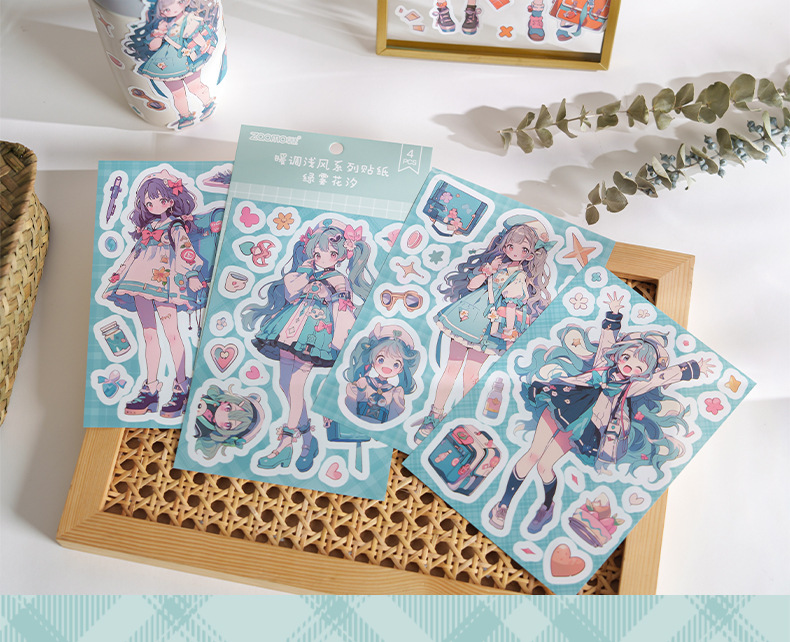 아침 거품 스티커 가방 따뜻하고 가벼운 바람 시리즈 귀여운 소녀 변경 그림 손 계정 소재 DIY 장식 스티커스토어 가기