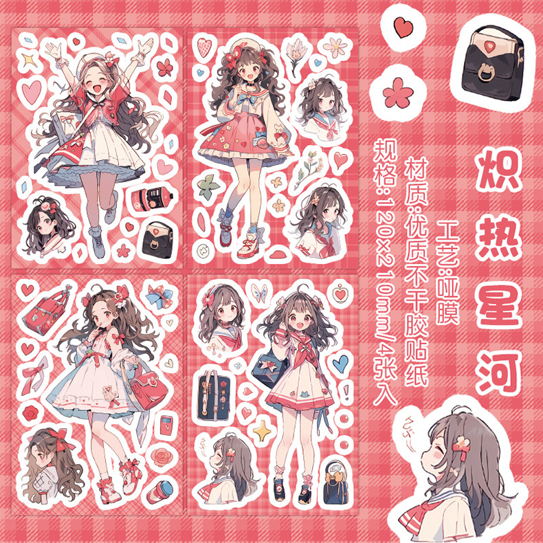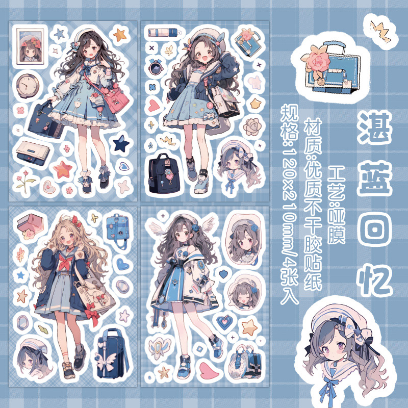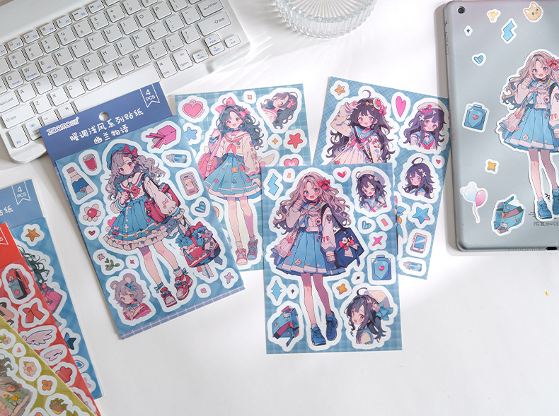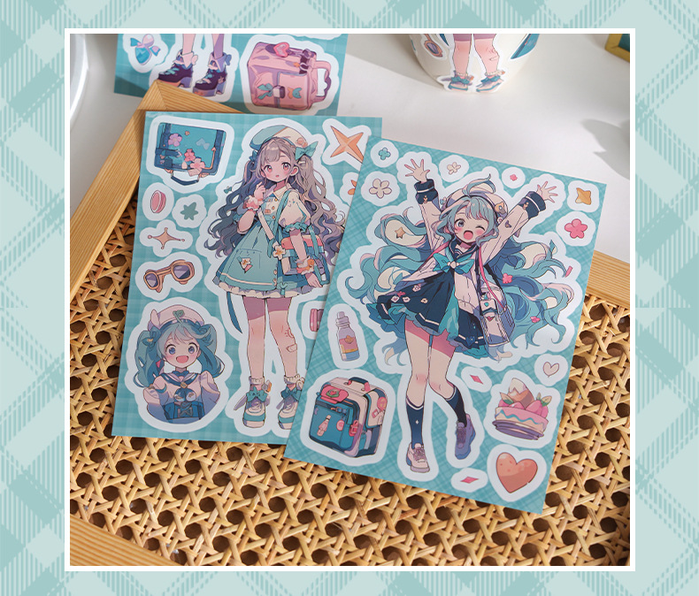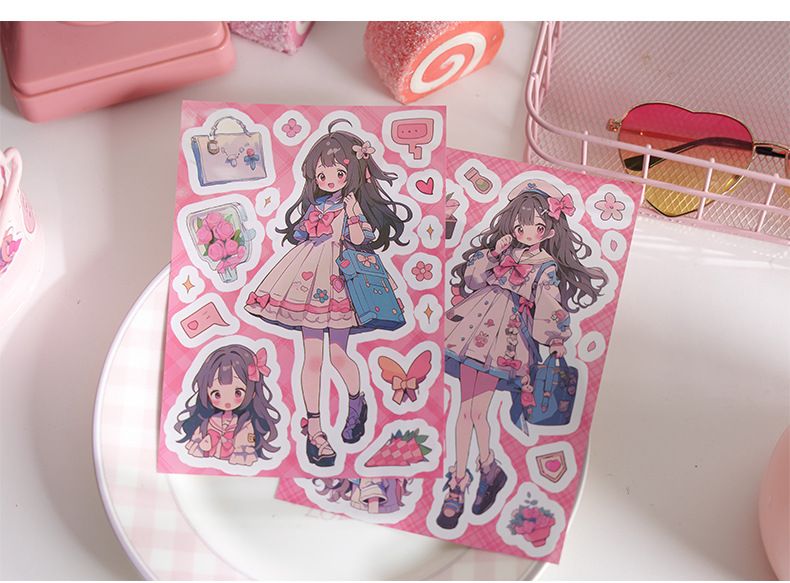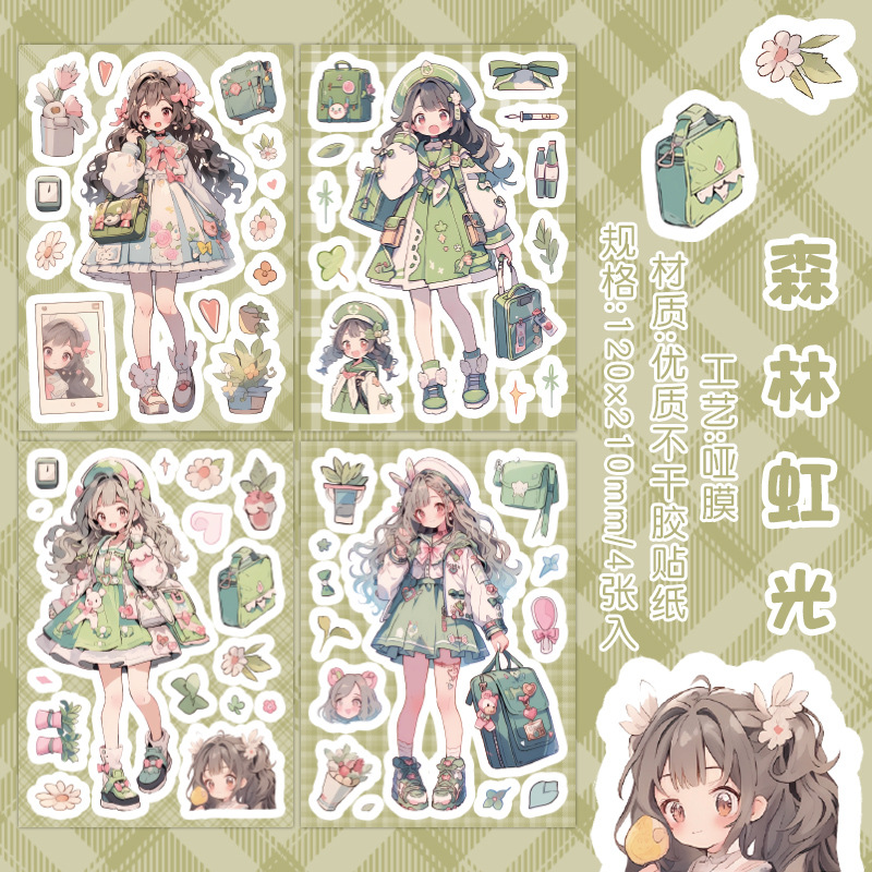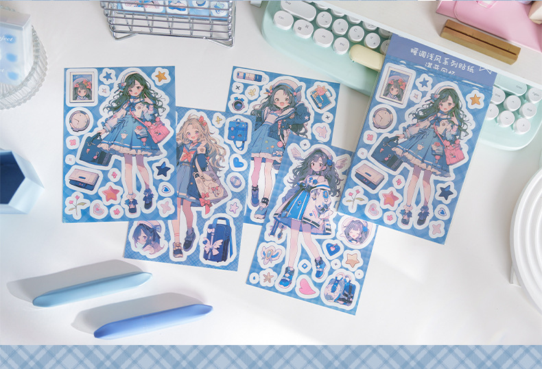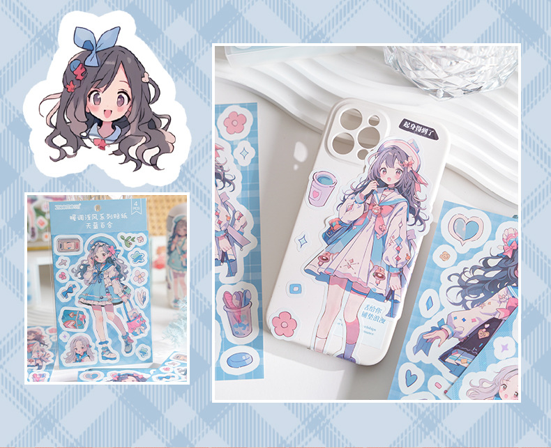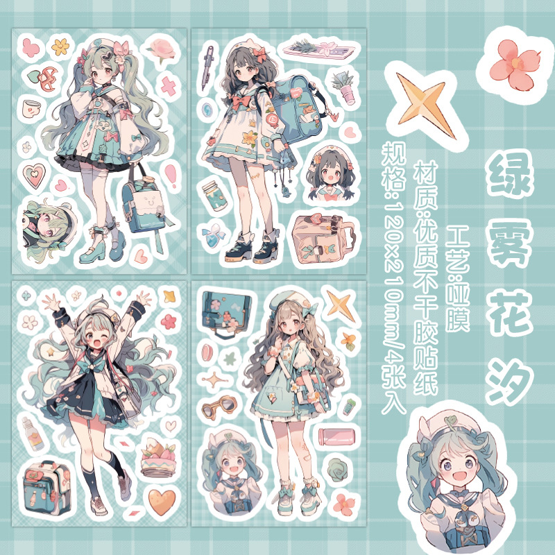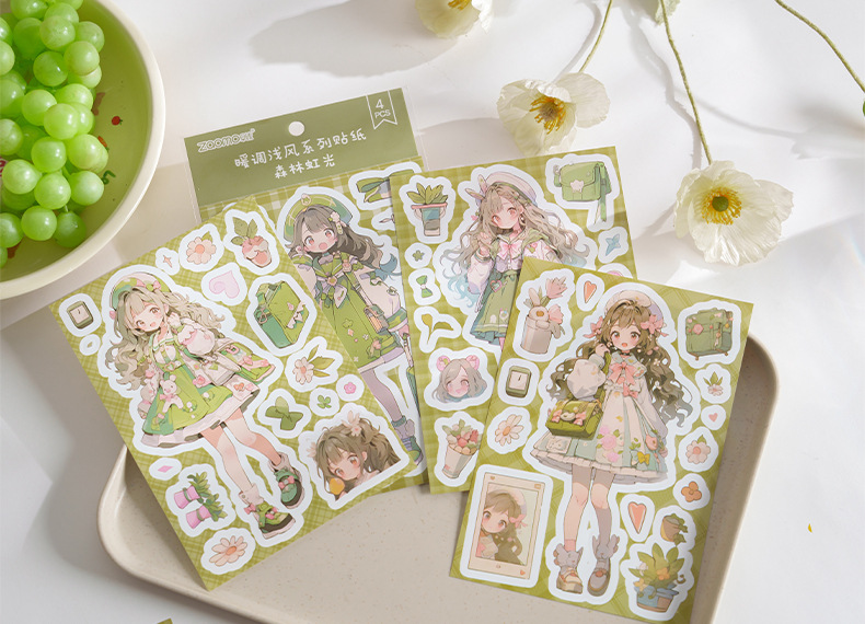 아침 거품 스티커 가방 따뜻하고 가벼운 바람 시리즈 귀여운 소녀 변경 그림 손 계정 소재 DIY 장식 스티커