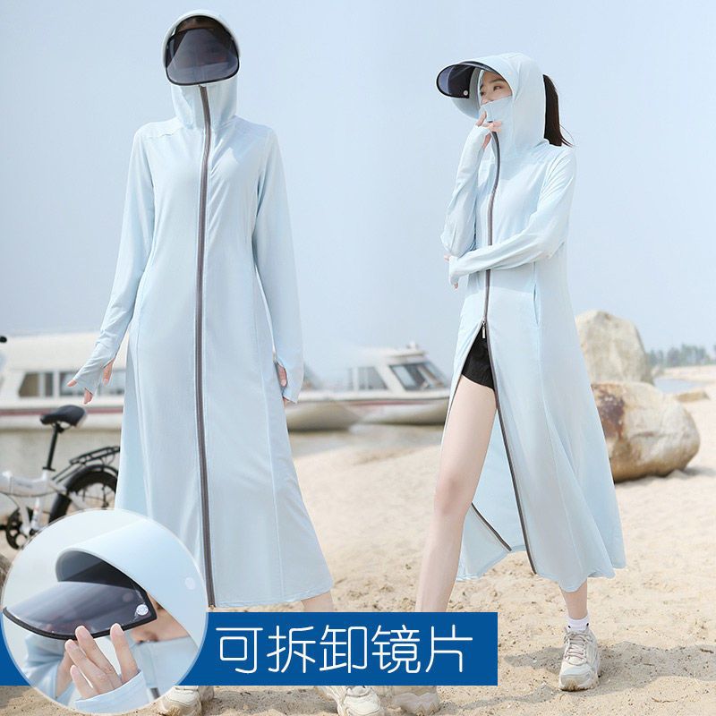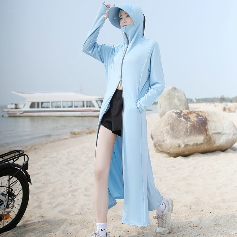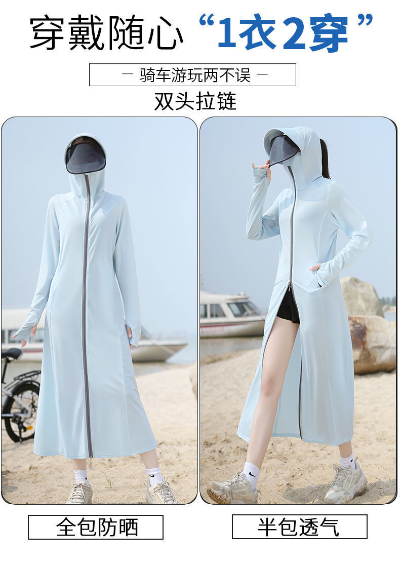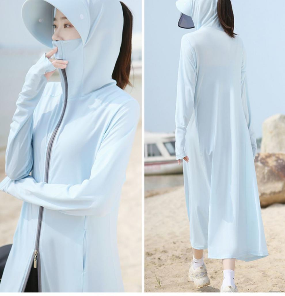 여름 전기 자동차 아이스 실크 긴 인터넷 연예인 느슨한 선 스크린 의류 여성의 자외선 보호 얇은 무릎 피부 의류스토어 가기