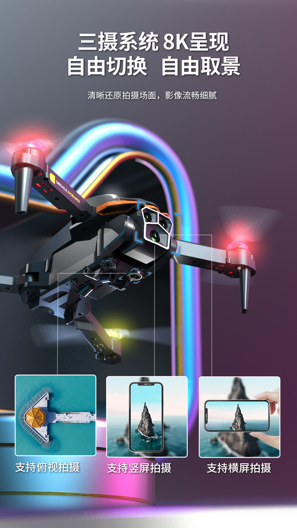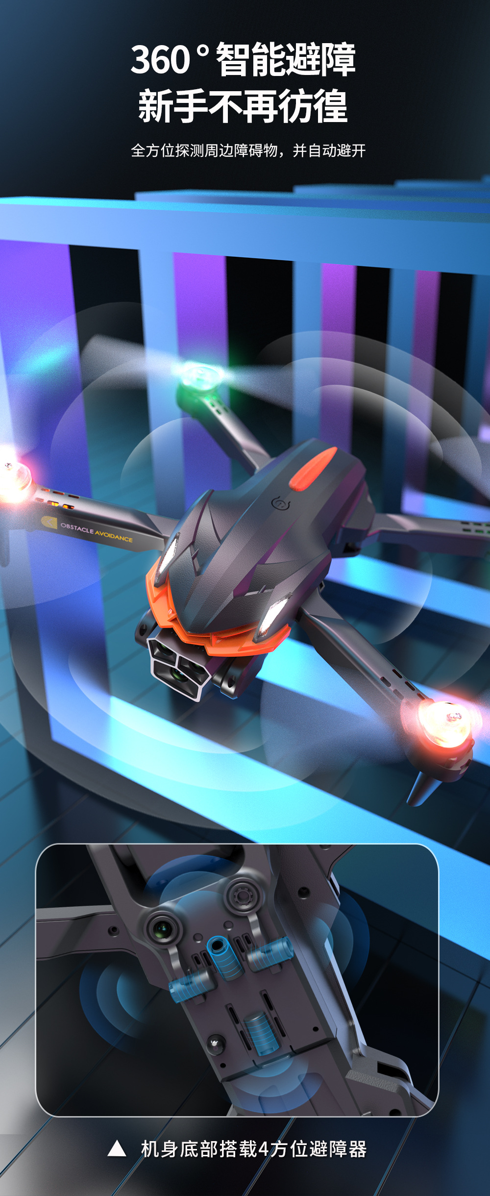 • 블랙 - 전자 제어식 카메라 3개/라이트 블레이드/사방 장애물 회피 [컬러 박스 버전]