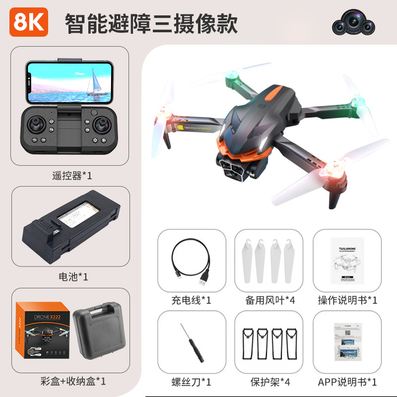 국경 X222 UAV ESC 3-카메라 8K 항공 사진 쿼드 콥터 광학 흐름 장애물 회피 원격 제어 항공기