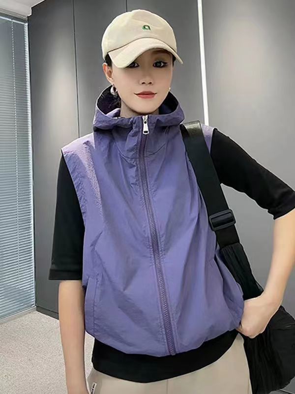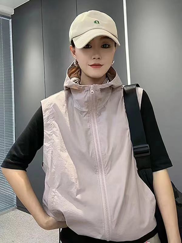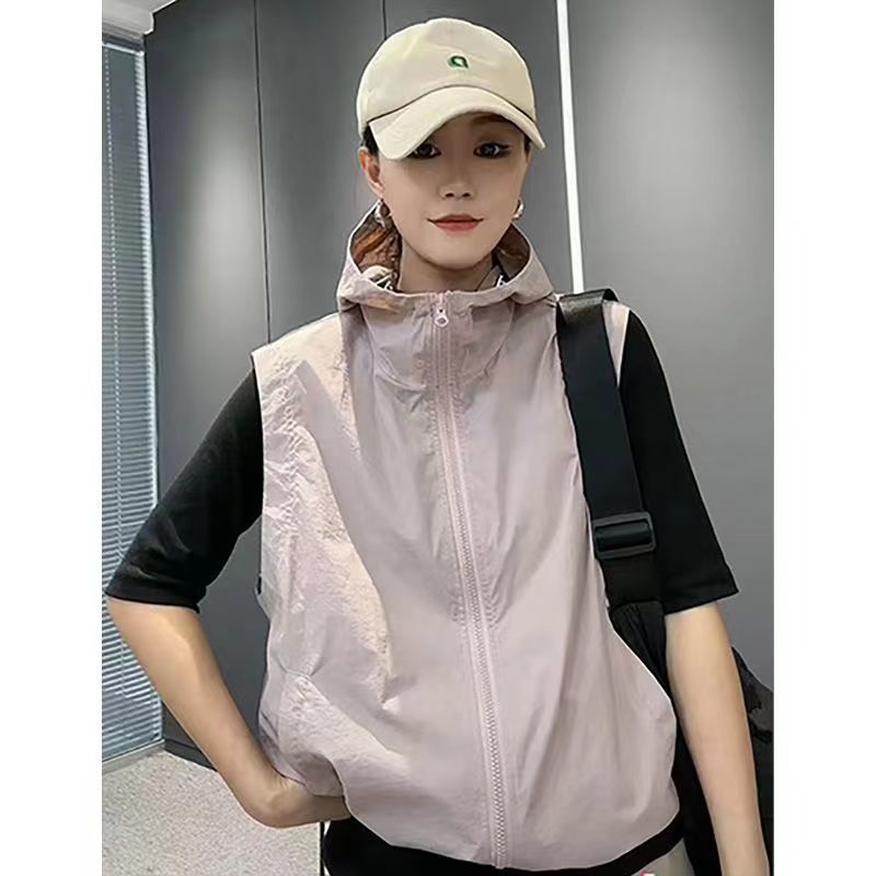 태양 보호 의류 여성 여름 새 조끼 태양 보호 의류 한국식 느슨한 플러스 사이즈 얇은 목에 매달린 조끼 짧은 재킷스토어 가기