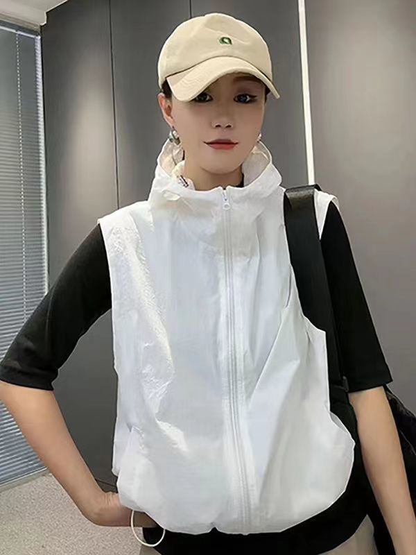 태양 보호 의류 여성 여름 새 조끼 태양 보호 의류 한국식 느슨한 플러스 사이즈 얇은 목에 매달린 조끼 짧은 재킷