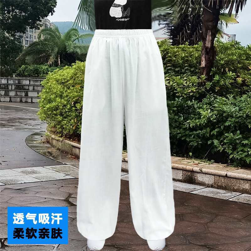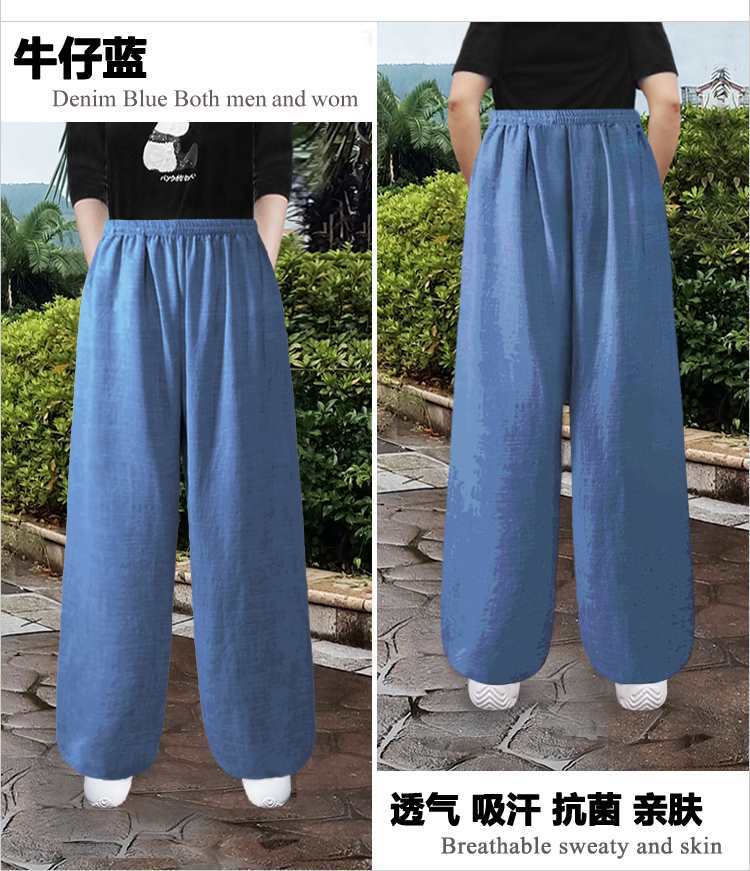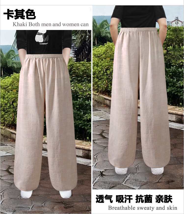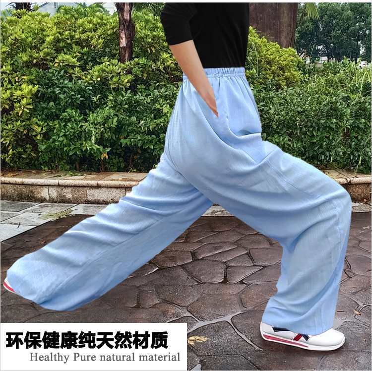 봄과 여름 코튼 타이치 바지 남자와 여자의 느슨한 블루머스 리넨 스포츠 피트니스 바지 요가 바지 격투기 바지 운동 바지