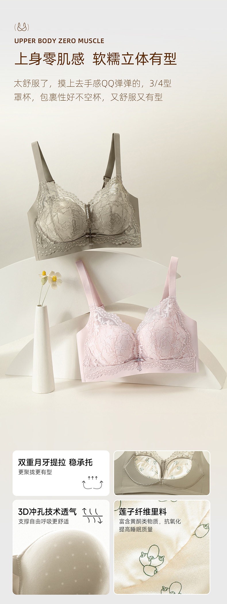 만디에리 8337 작은 가슴을 위한 푸쉬업 여성 속옷 통기성 부드러운 지지력 입체 무사이드본 브라스토어 가기