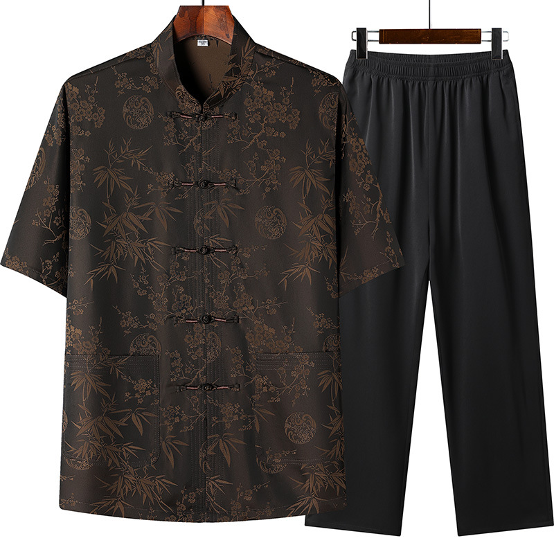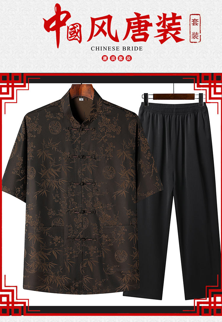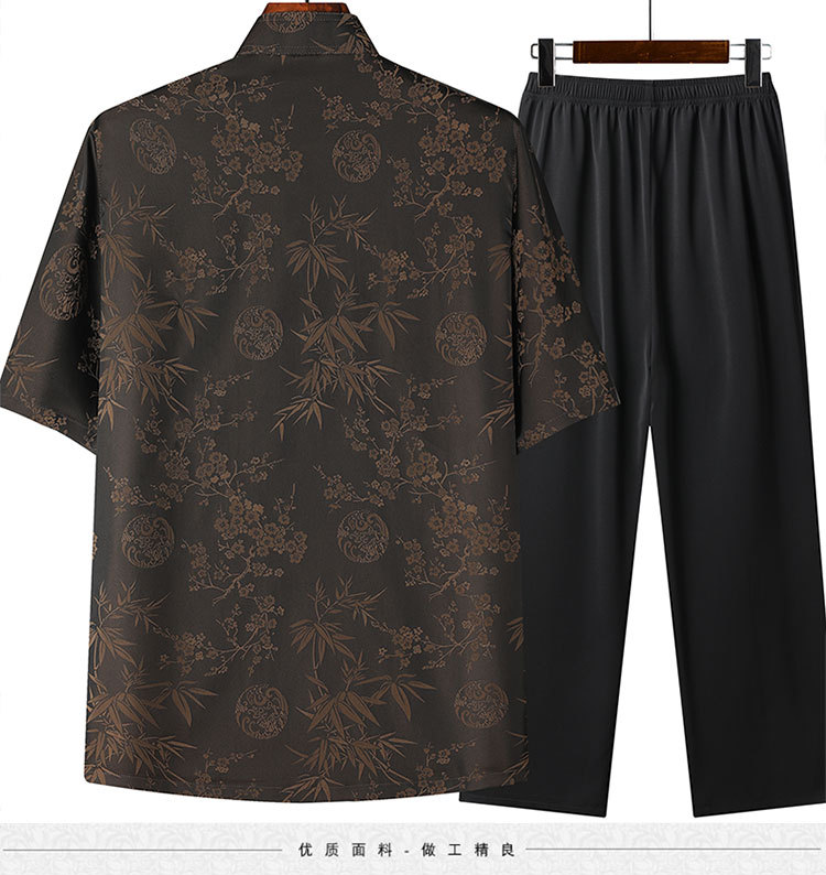 여름 중년 및 노인 탕 원피스 남자 얇은 아이스 실크 세트 중국 스타일 아빠의 반팔 노인 생일 할아버지 원피스스토어 가기