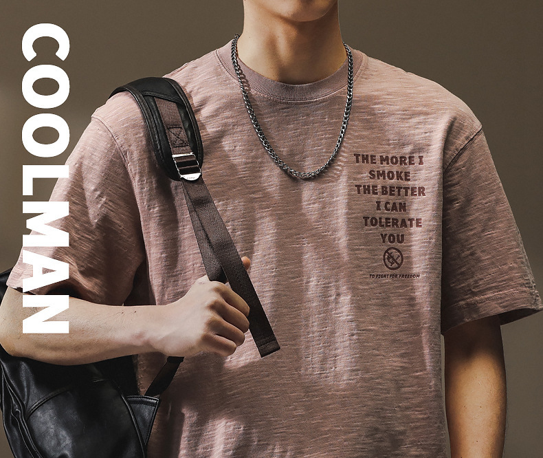 하이 엔드 헤비 슬럽 코튼 핑크 반팔 티셔츠 남자 2024 년 봄과 여름 뉴 루즈 플러스 사이즈 남자 티셔츠 탑스토어 가기