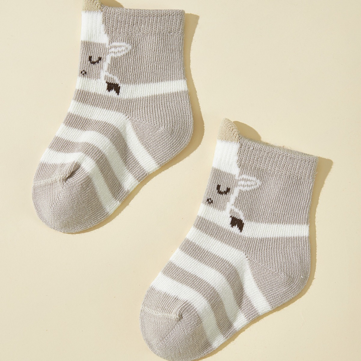 4 쌍의 혼합 컬러 어린이 양말 만화 동물 패턴 뼈없는 솔기 머리는 발을 다치게하지 않습니다