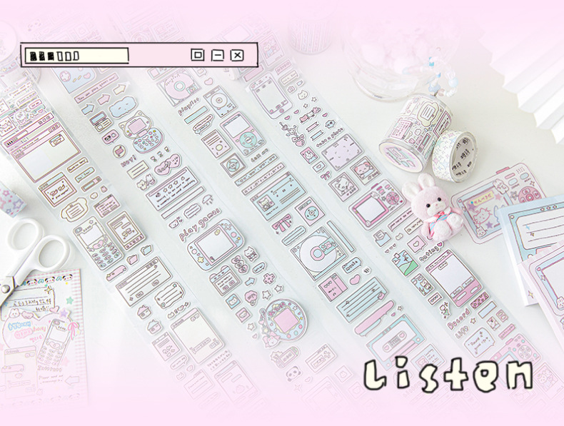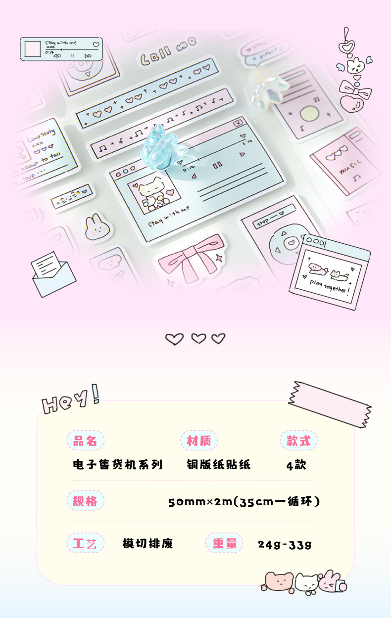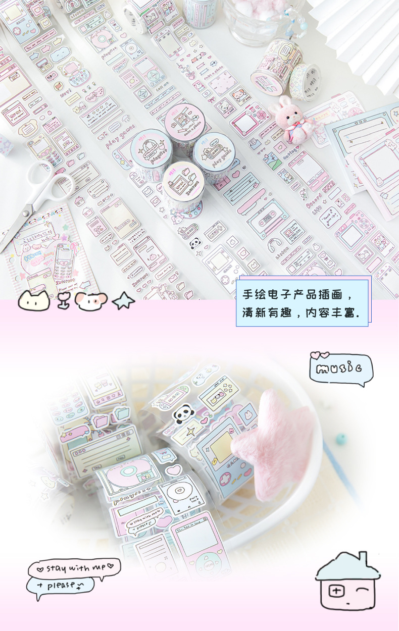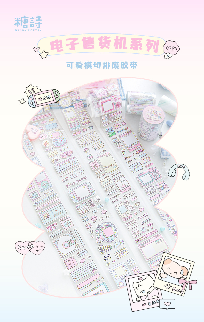 설탕시 다이 컷 폐기물 배출 테이프 전자 자동 판매기 시리즈 스타일 스티커 손 계정 구 카드 DIY 장식 콜라주