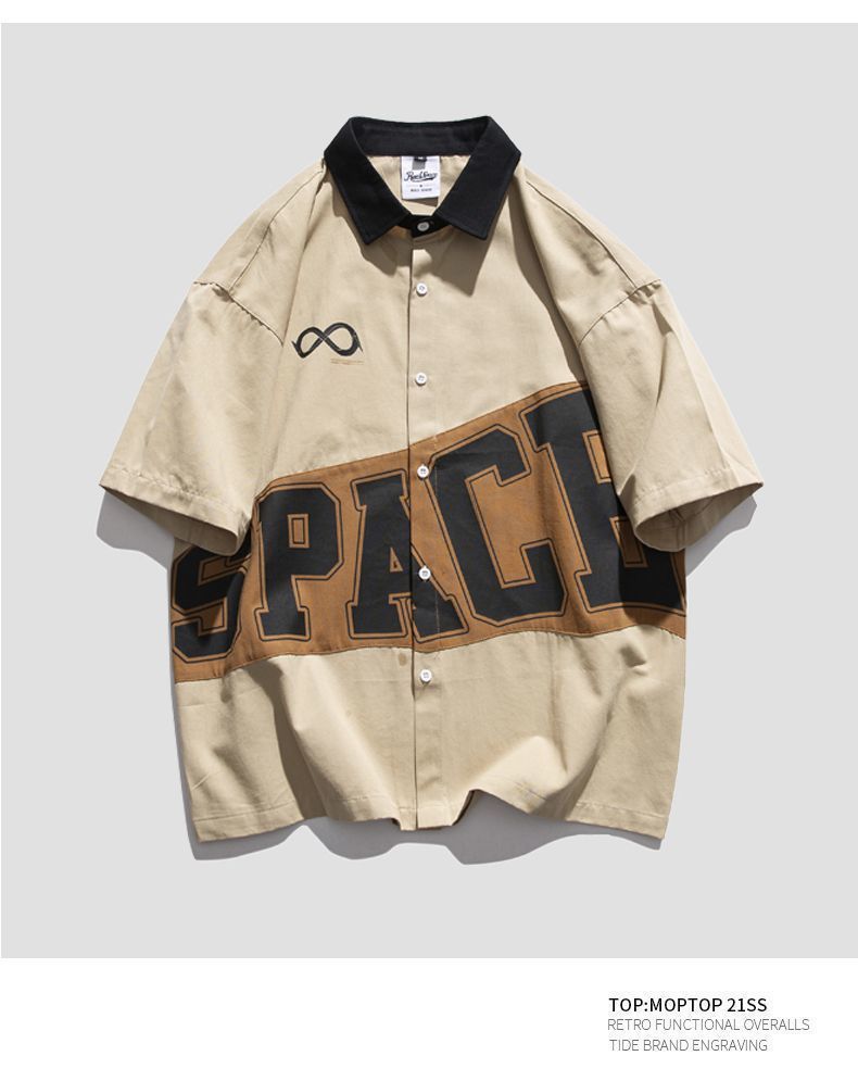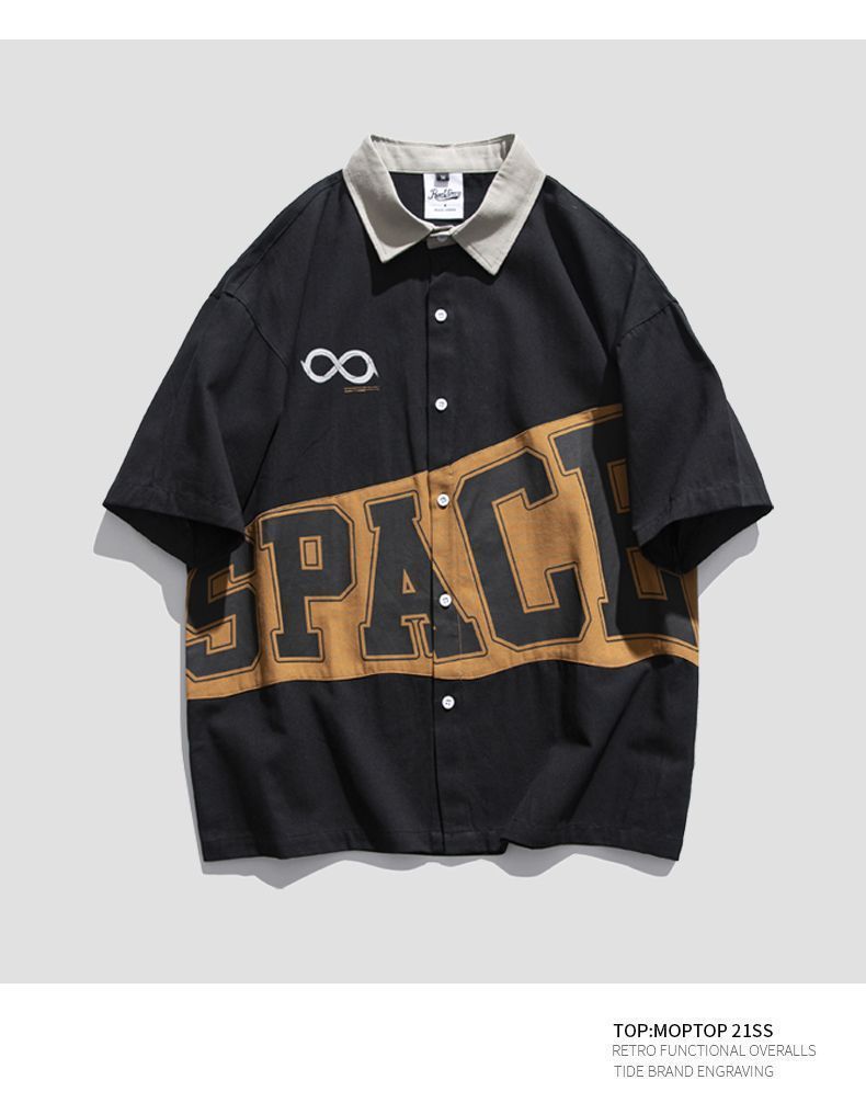 여름 트렌디 브랜드 힙합 프린트 홍콩 스타일 루즈 반팔 일본 복고풍 오토바이 반팔 유니섹스 셔츠 재킷스토어 가기