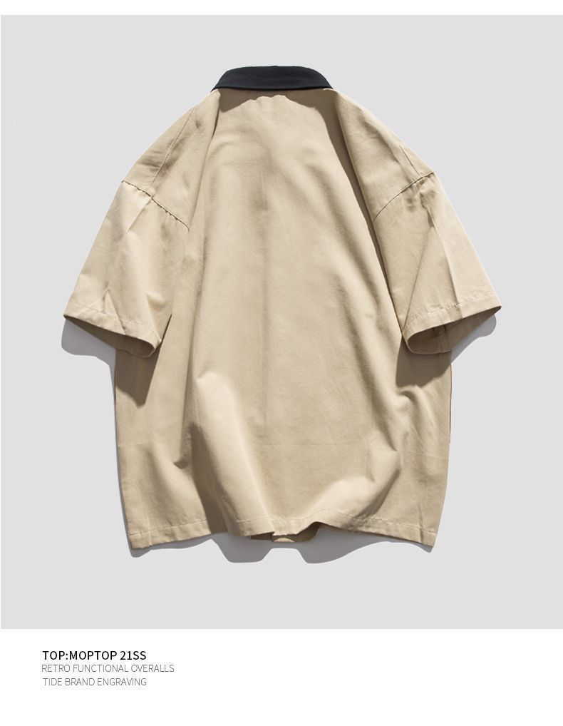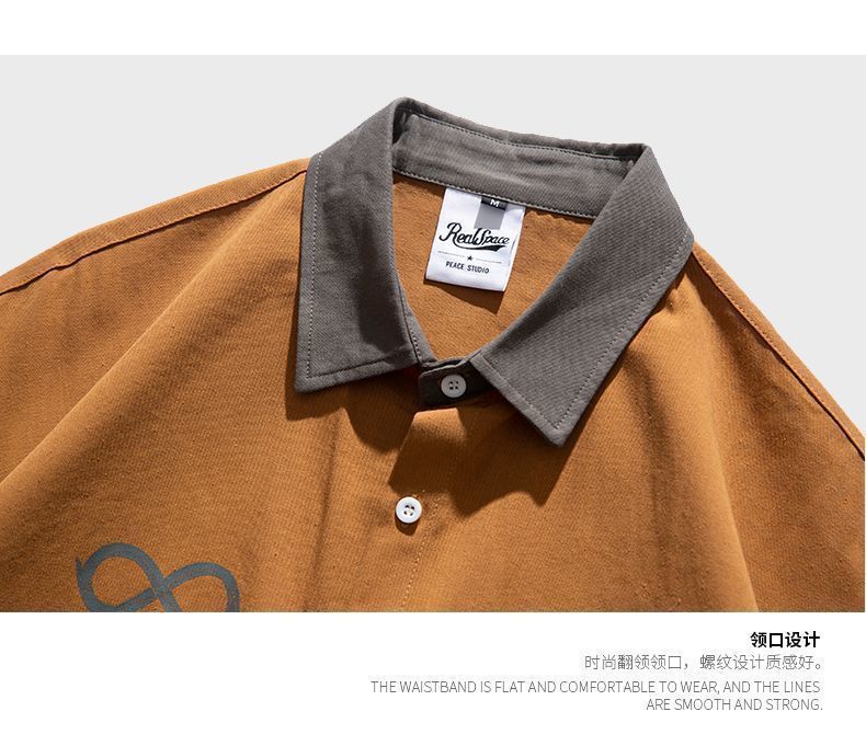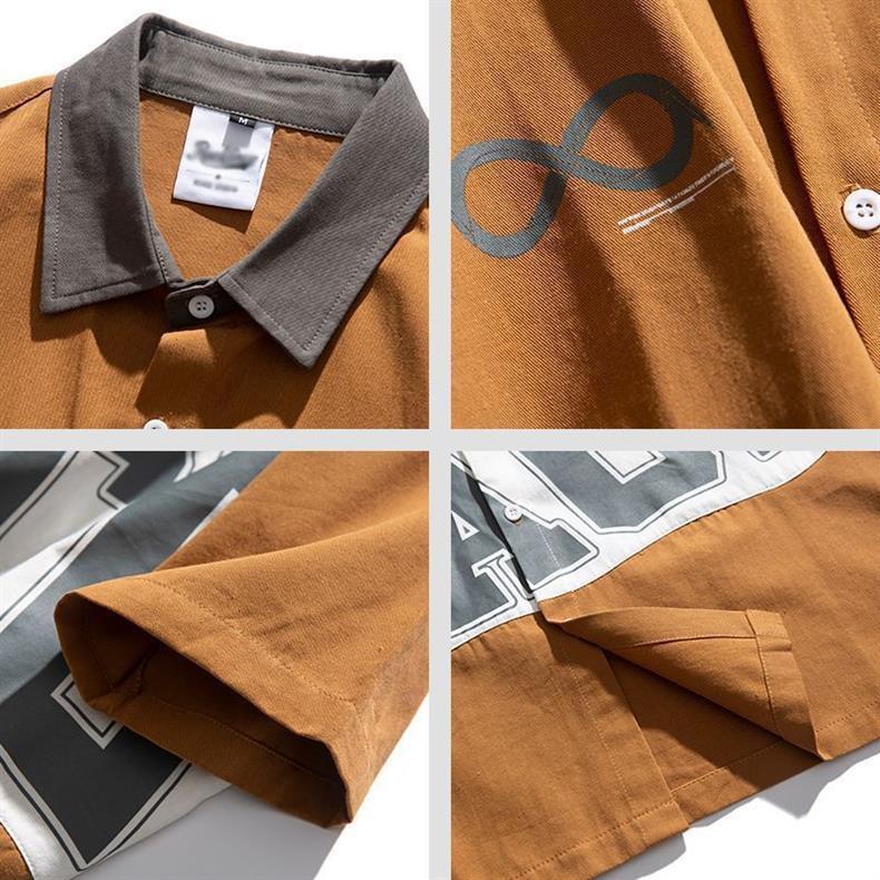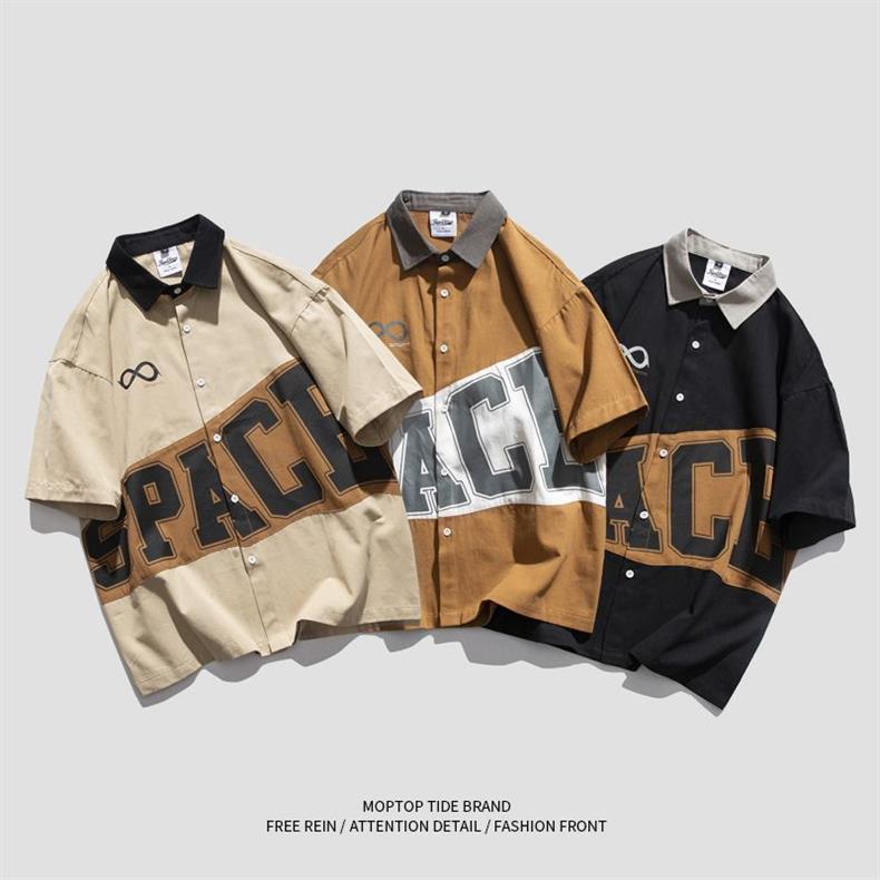 여름 트렌디 브랜드 힙합 프린트 홍콩 스타일 루즈 반팔 일본 복고풍 오토바이 반팔 유니섹스 셔츠 재킷
