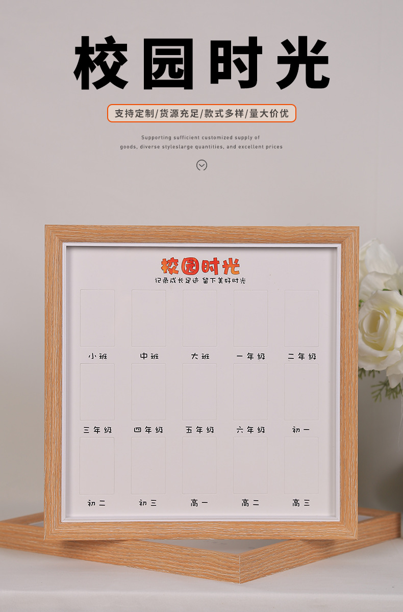 캠퍼스 타임 여행 사진 액자, 창의적인 어린이 성장 사진관 조합, 사진 벽걸이, 나무 액자 도매