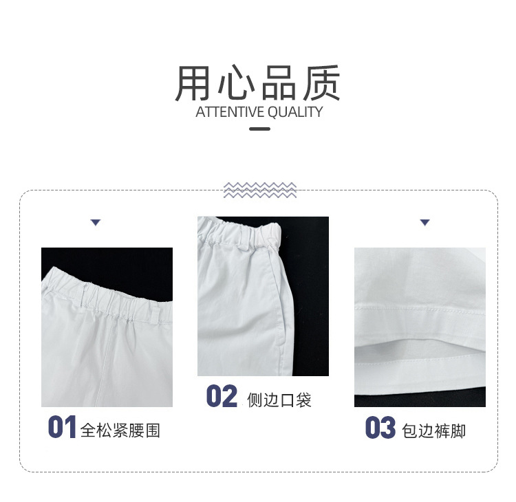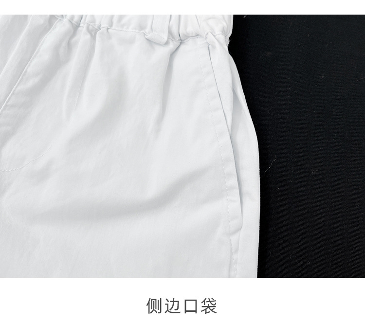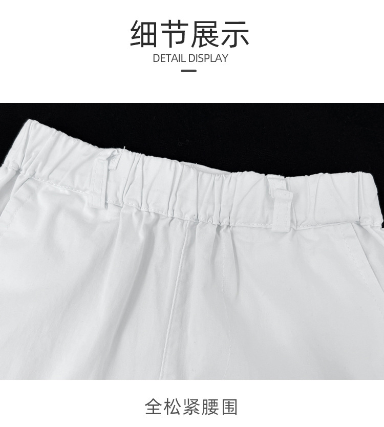 여름 어린이 흰색 반바지 탄성 초등학교 유니폼 바지 탄성 허리 바지 소년 바지 바지