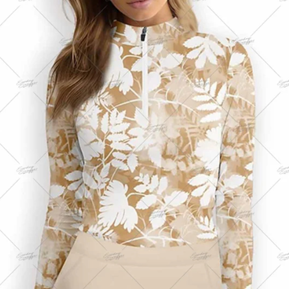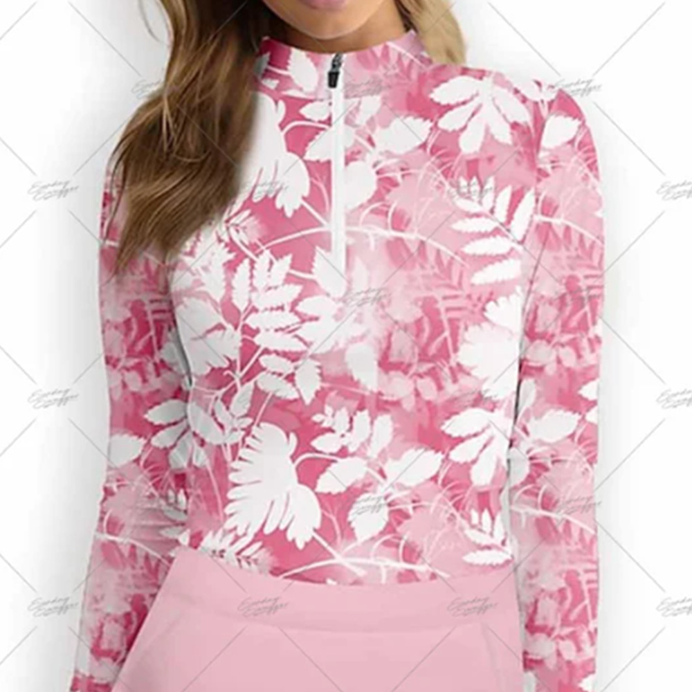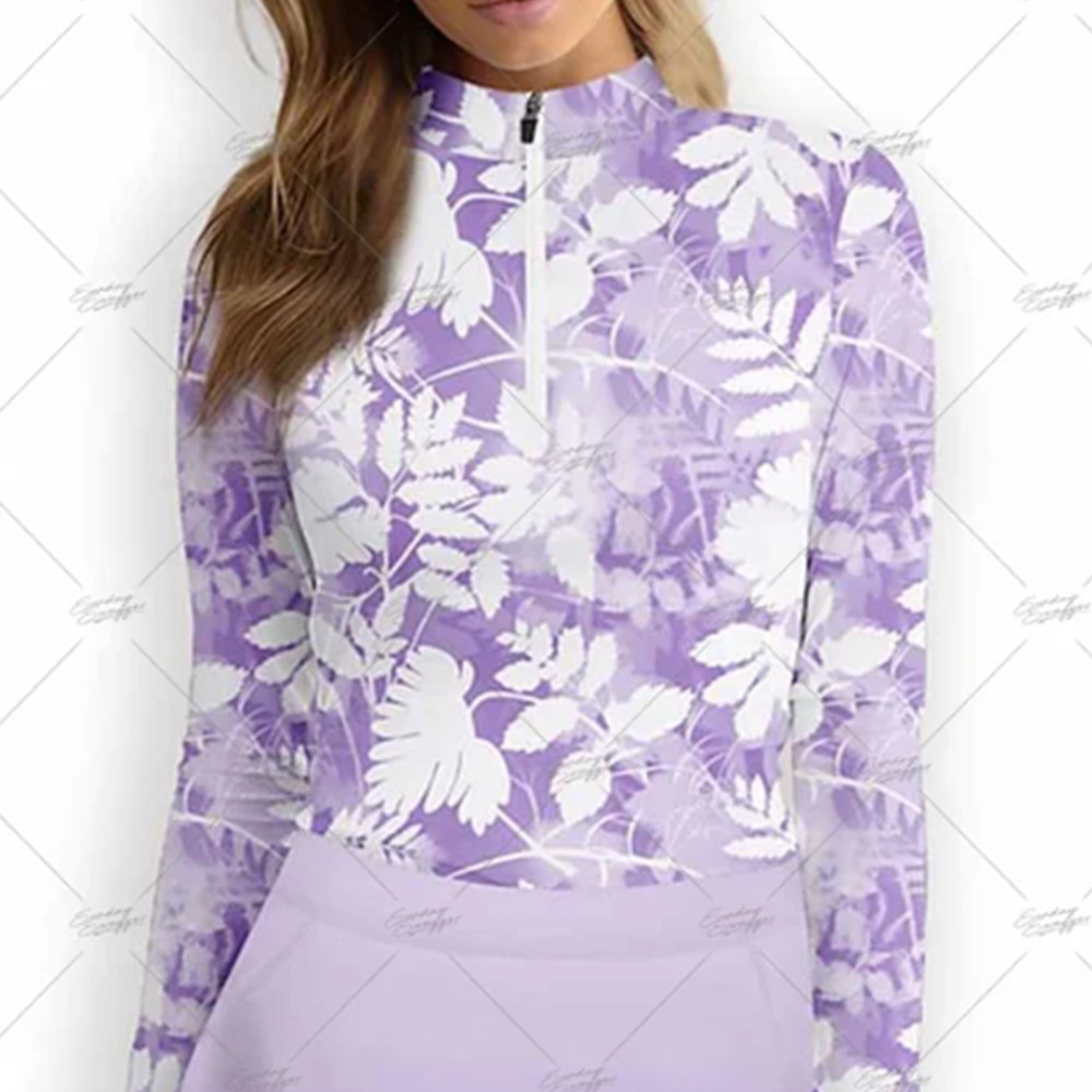 여자 야외 캐주얼 골프 폴로 셔츠 긴 소매 가을 간단한 인쇄 통기성 빠른 건조 테니스 골프 저지스토어 가기