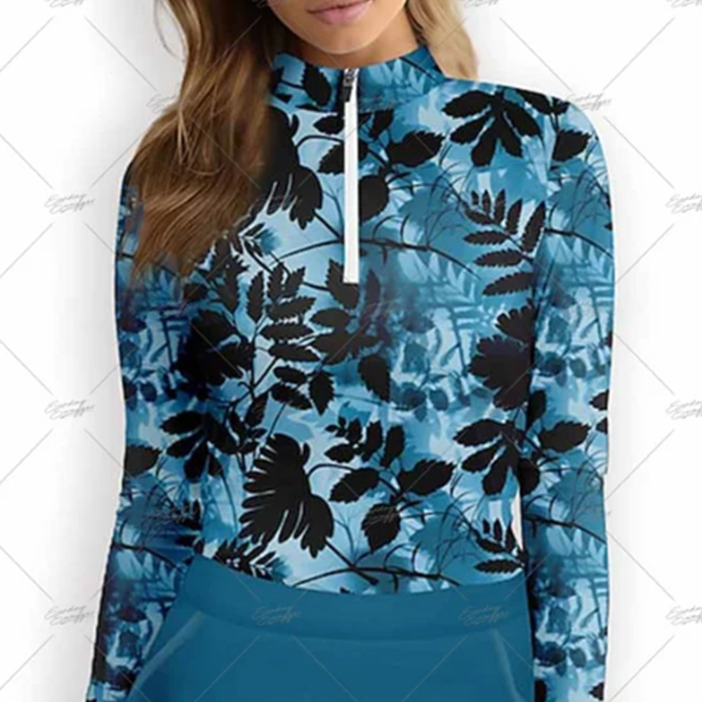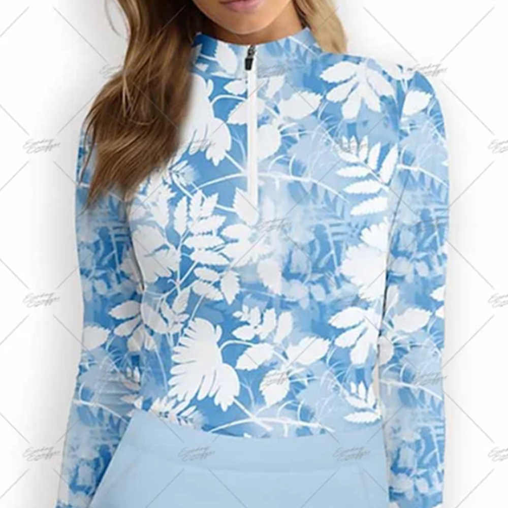 여자 야외 캐주얼 골프 폴로 셔츠 긴 소매 가을 간단한 인쇄 통기성 빠른 건조 테니스 골프 저지