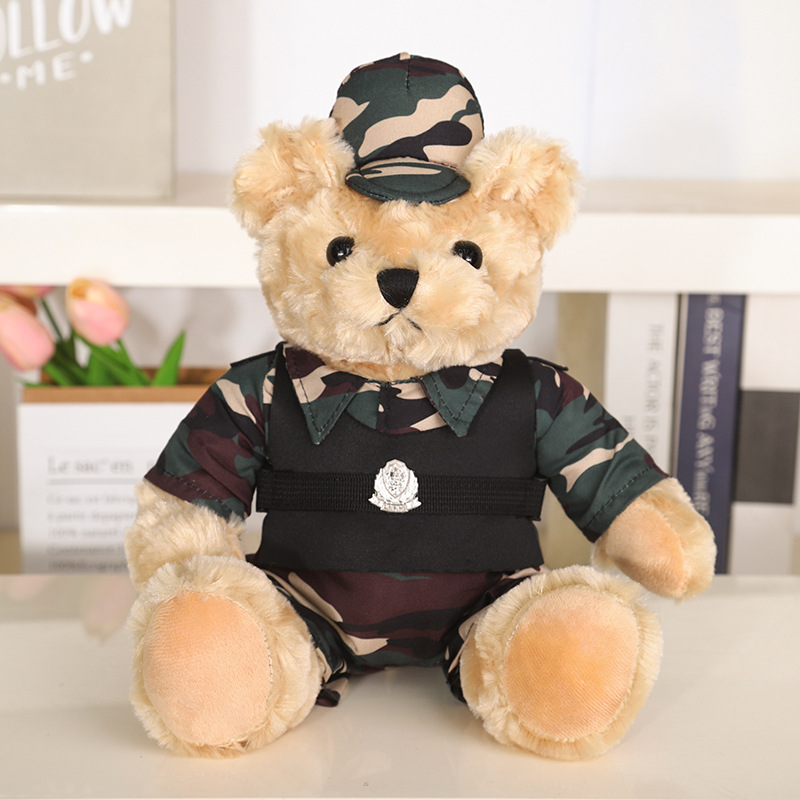 • 서 있는 자세로 경찰 브라운 곰 인형 경례 표시