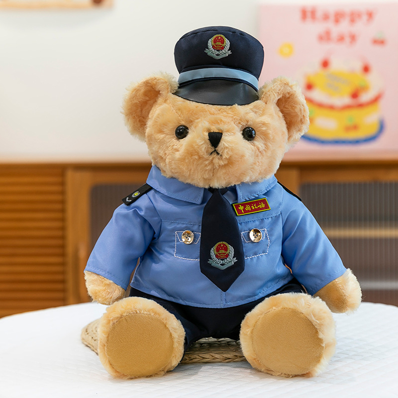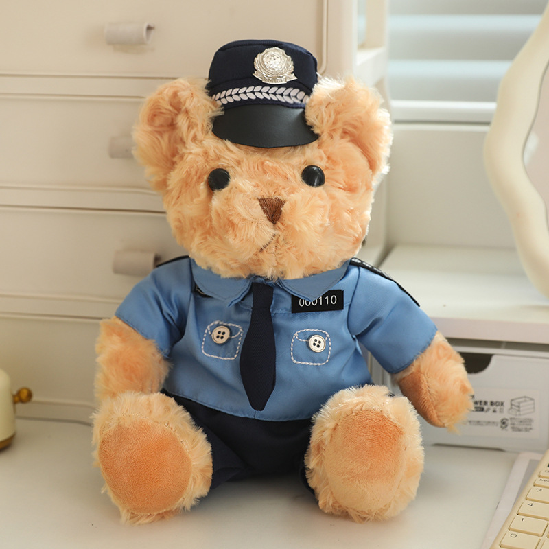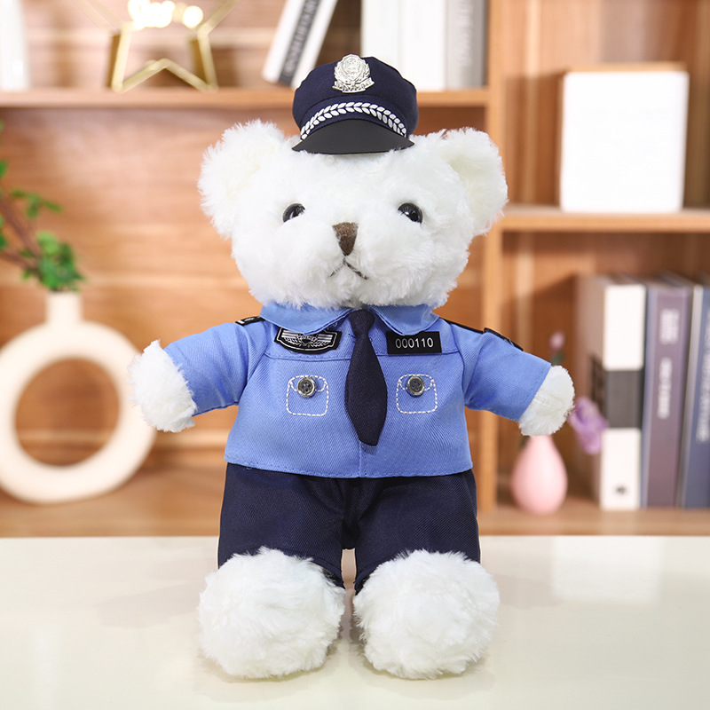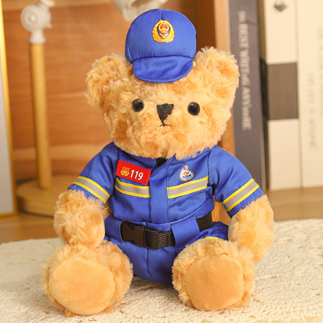 소년 소녀를위한 경찰 새끼 곰 인형 교통 경찰 새끼 곰 인형 제복 소방관 테디 베어 봉제 장난감 선물