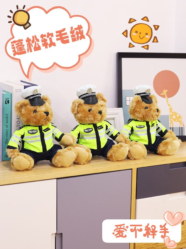 소년 소녀를위한 경찰 새끼 곰 인형 교통 경찰 새끼 곰 인형 제복 소방관 테디 베어 봉제 장난감 선물스토어 가기