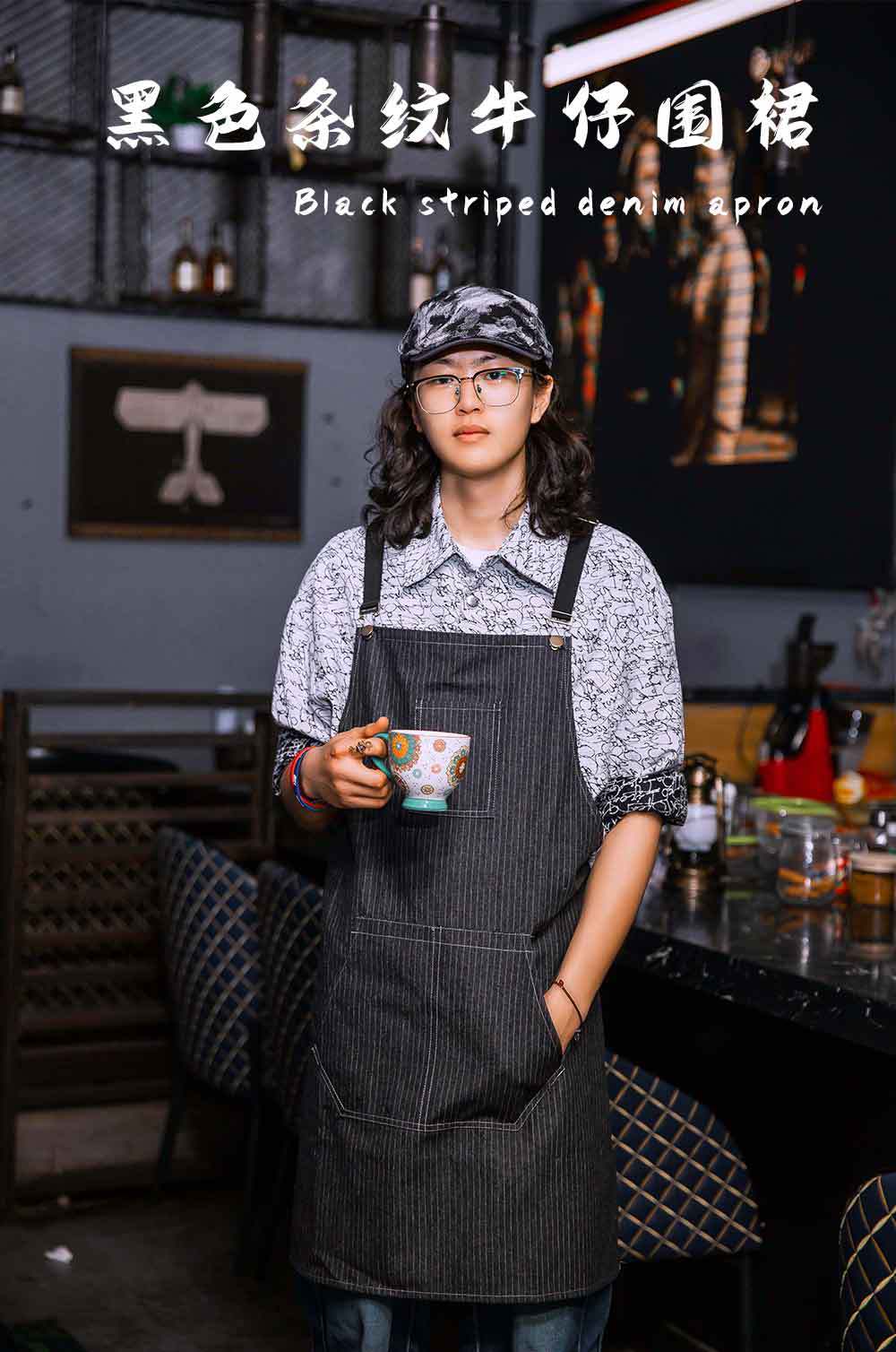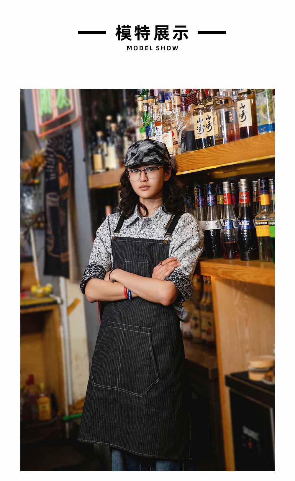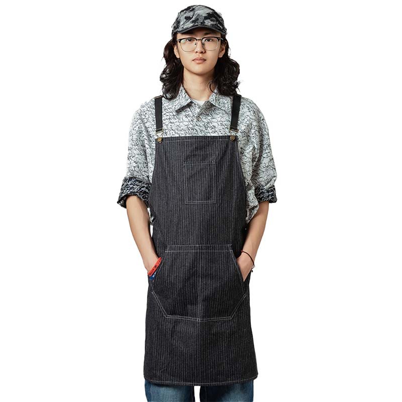 현대 간단한 순면 줄무늬 데님 앞치마 끈 안티 얼룩 가정용 주방 작업 옷 레스토랑 모든면 허리
