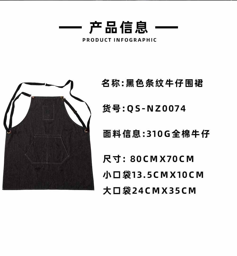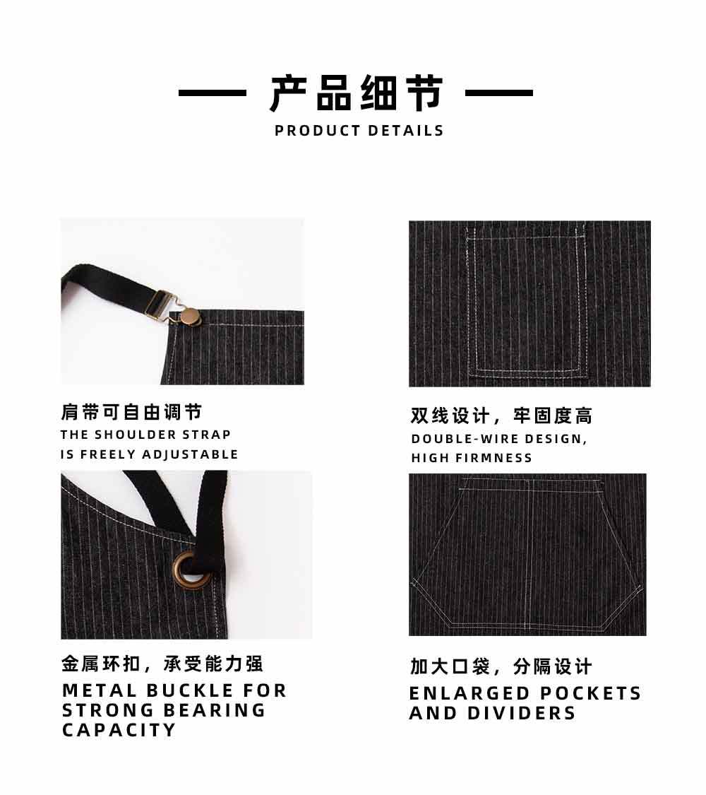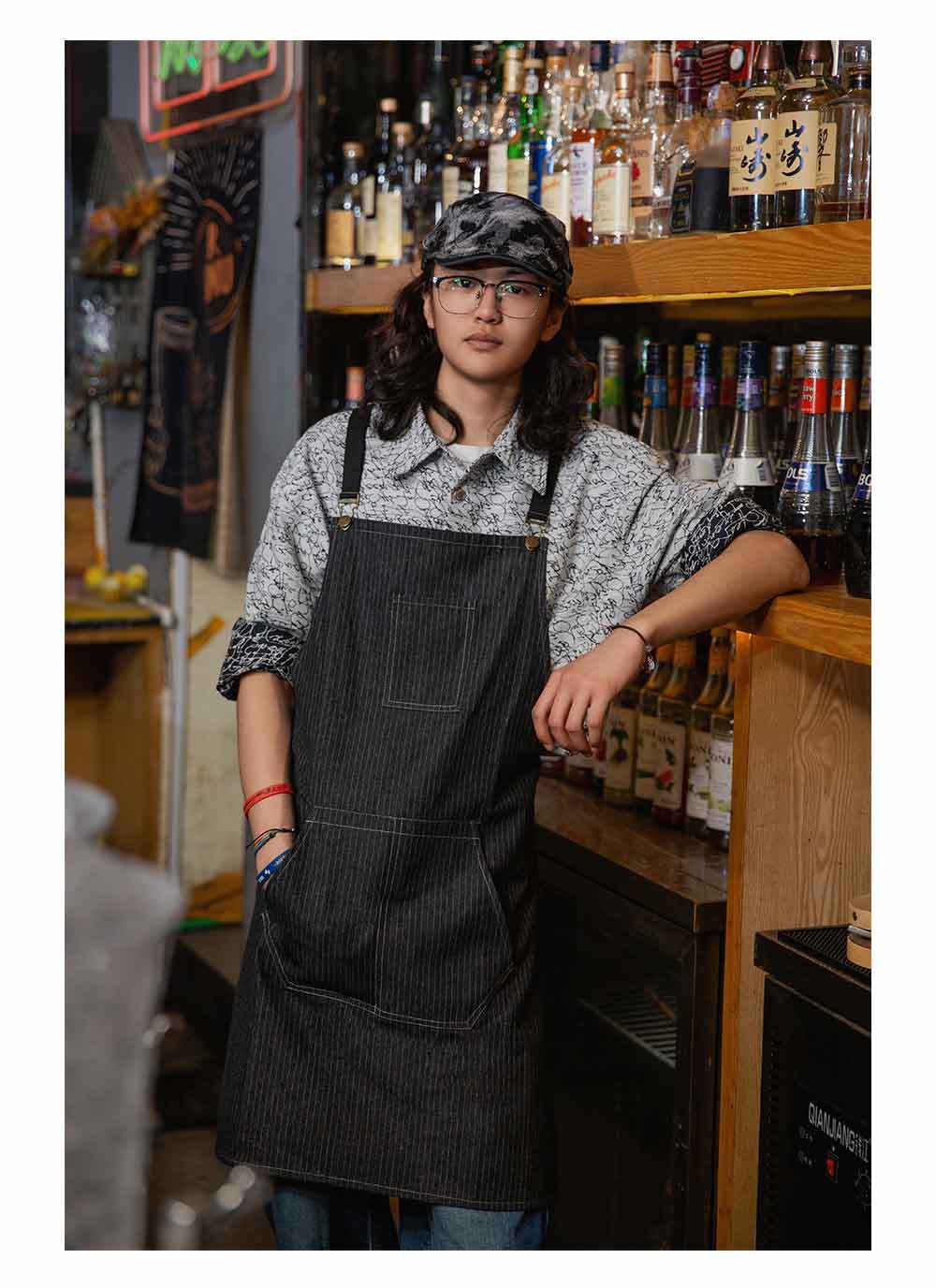 현대 간단한 순면 줄무늬 데님 앞치마 끈 안티 얼룩 가정용 주방 작업 옷 레스토랑 모든면 허리
