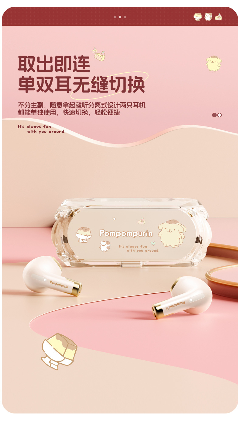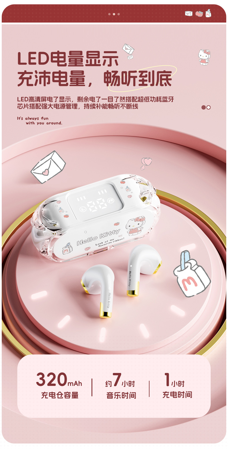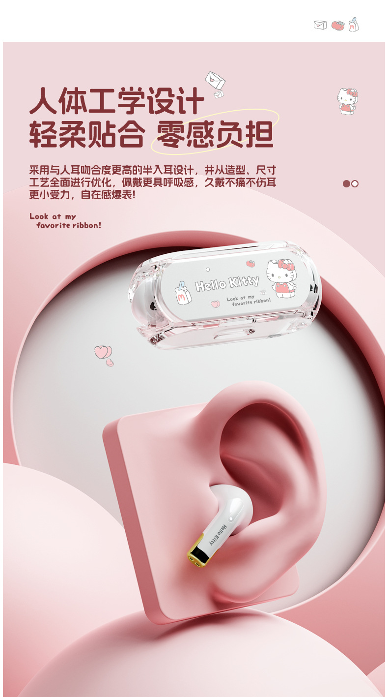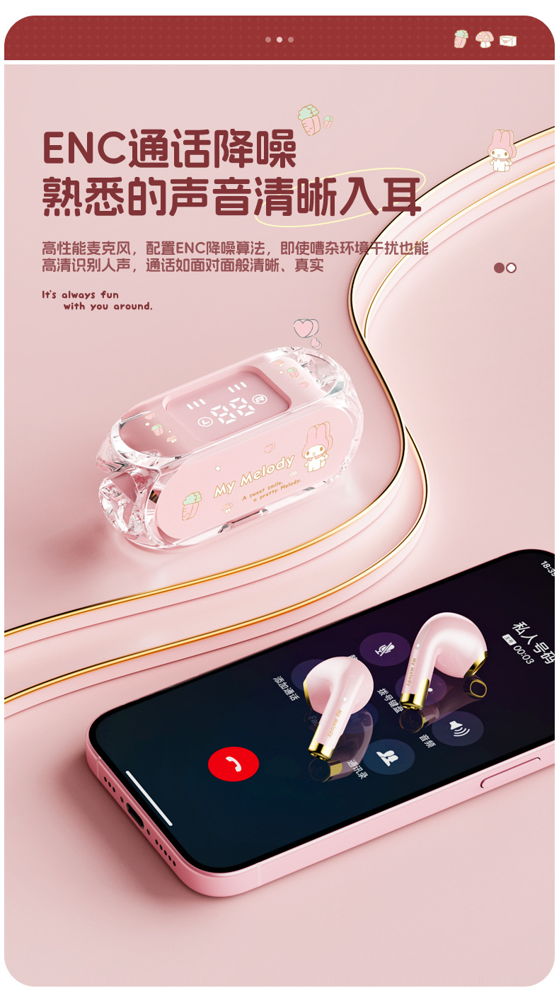 산리오 블루투스 헤드셋 스트립 귀여운 휴대용 투명 스포츠 인 이어 헤드셋 긴 수명과 좋은 음질
