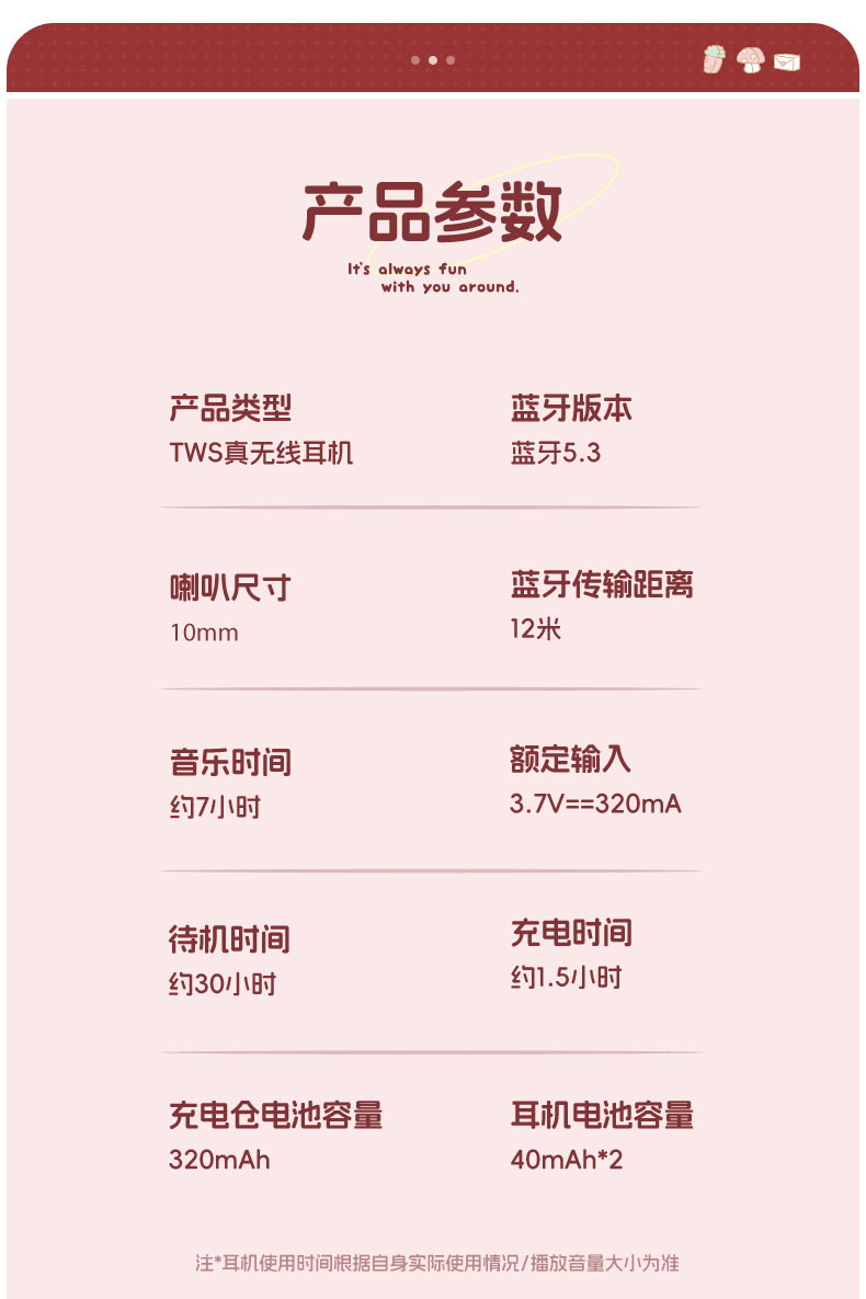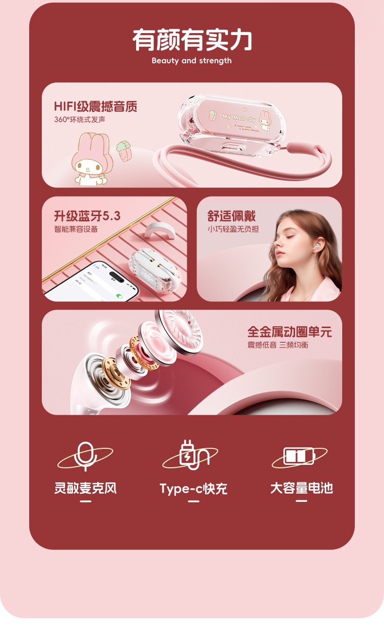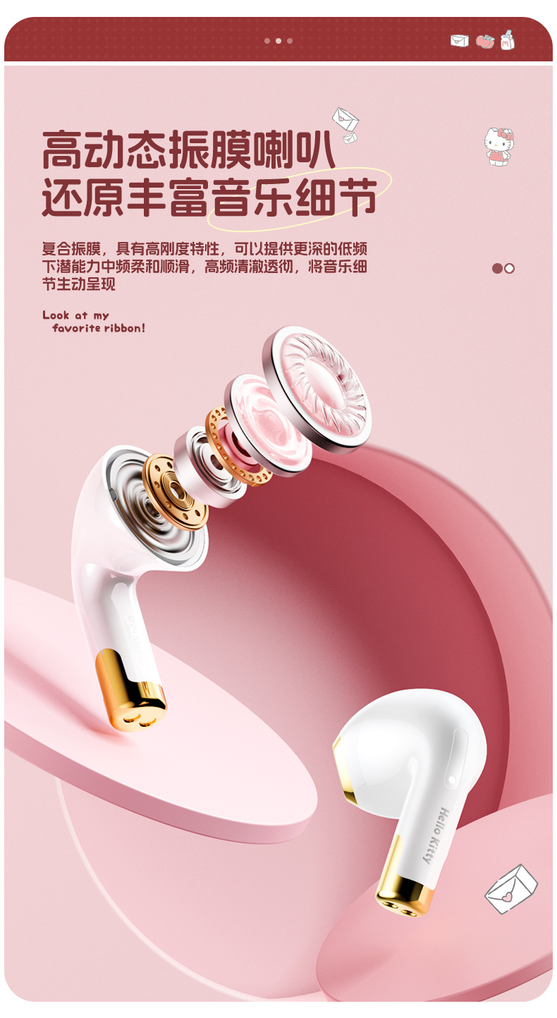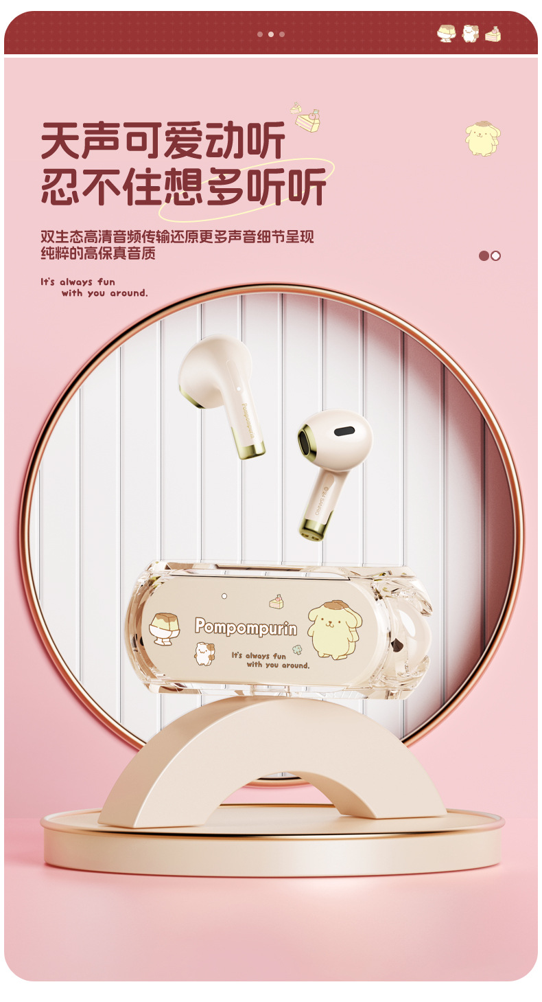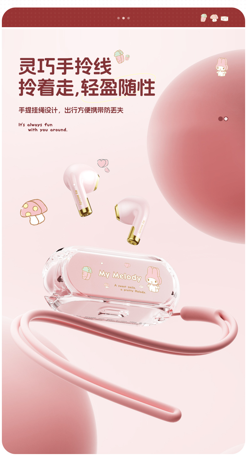 산리오 블루투스 헤드셋 스트립 귀여운 휴대용 투명 스포츠 인 이어 헤드셋 긴 수명과 좋은 음질